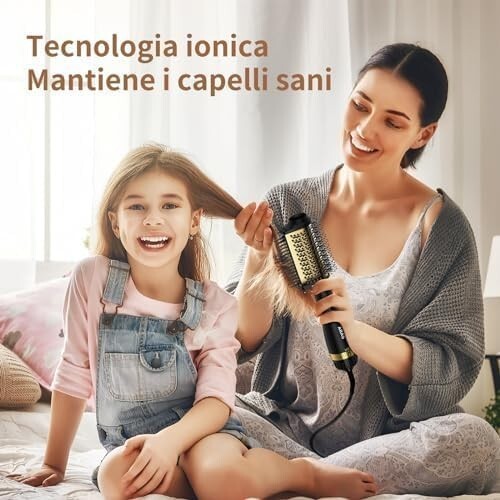 Tecnologia a ioni negativi: la spazzola ad aria calda è dotata di una testina a ioni negativi e di tecnologia di riscaldamento PTC, che riscalda i capelli in modo più uniforme ed evita danni. Lo ionizzatore rende i capelli lisci e lucenti! Aiuta a districare e lisciare istantaneamente i capelli, mantenendoli sani, lucenti e senza crespo.