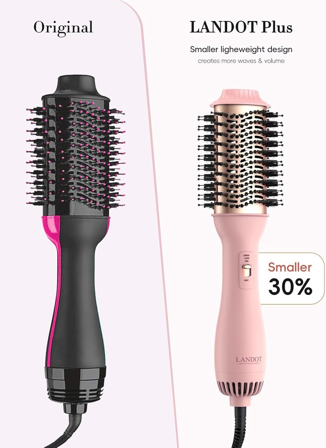 LANDOT Spazzola Asciugacapelli e Volumizzante, Spazzola Ad Aria Calda - 4 in 1 Phon Ioni Spazzola Elettrica per Asciugare Lisciare e Volume Capelli.
