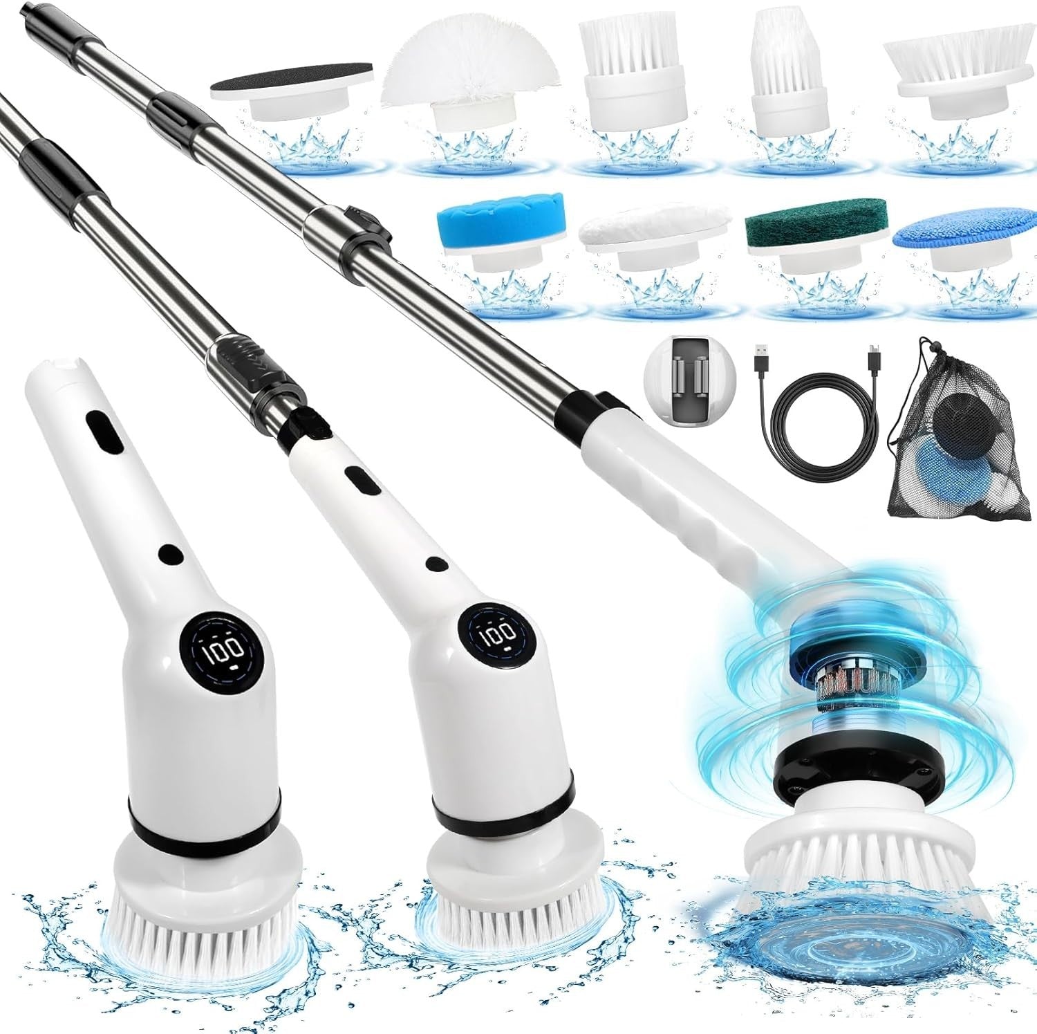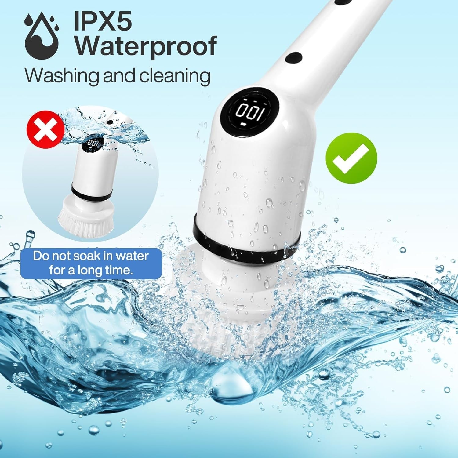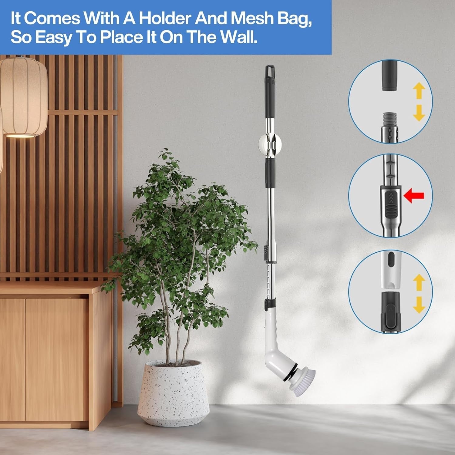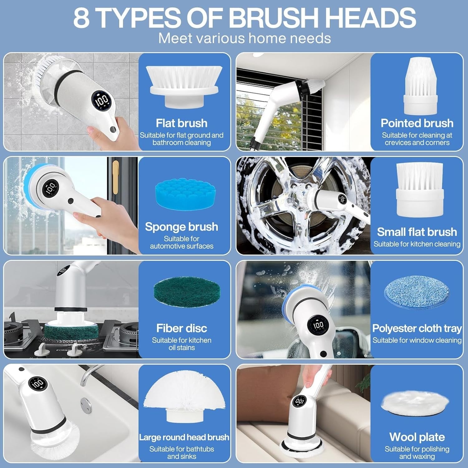 Spazzola elettrica per la pulizia MULEVIP, spazzola elettrica per la pulizia, spazzola elettrica con 8 testine intercambiabili, spazzola elettrica regolabile per la pulizia di vasca, pavimento, bagno, cucina e auto.