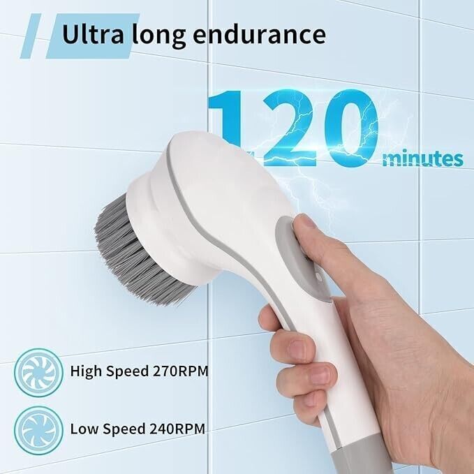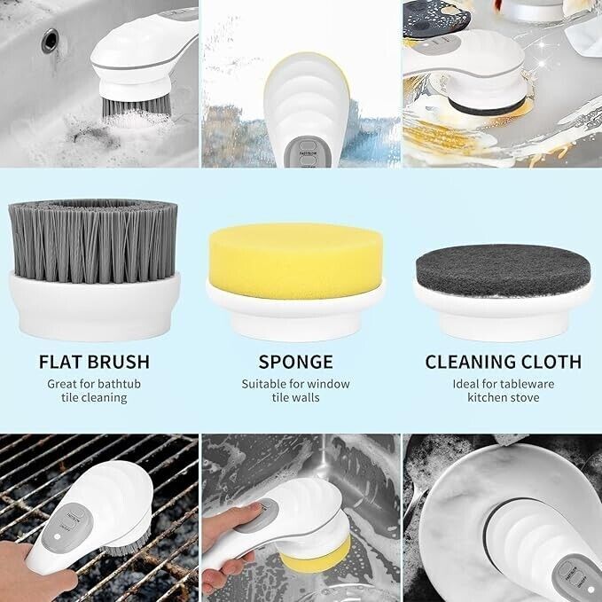 Ampio utilizzo.La spazzola elettrica è un valido aiuto per la pulizia domestica, ideale per fornelli da cucina, utensili da cucina, piatti, griglie, vasche da bagno, pareti, scarpe, lavandini, ecc. Pulizia efficiente, risparmio di tempo e fatica, è il regalo perfetto per la mamma o la moglie per la festa della mamma, compleanno, Capodanno, Natale.