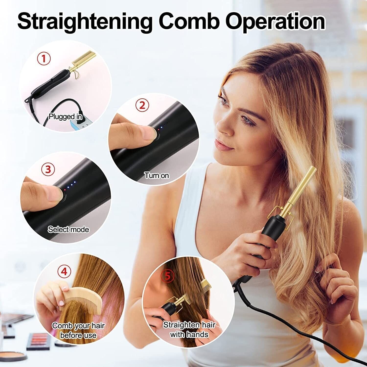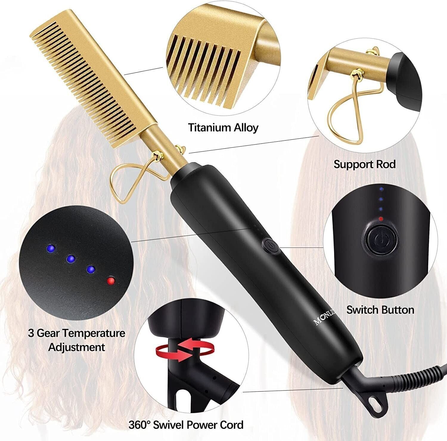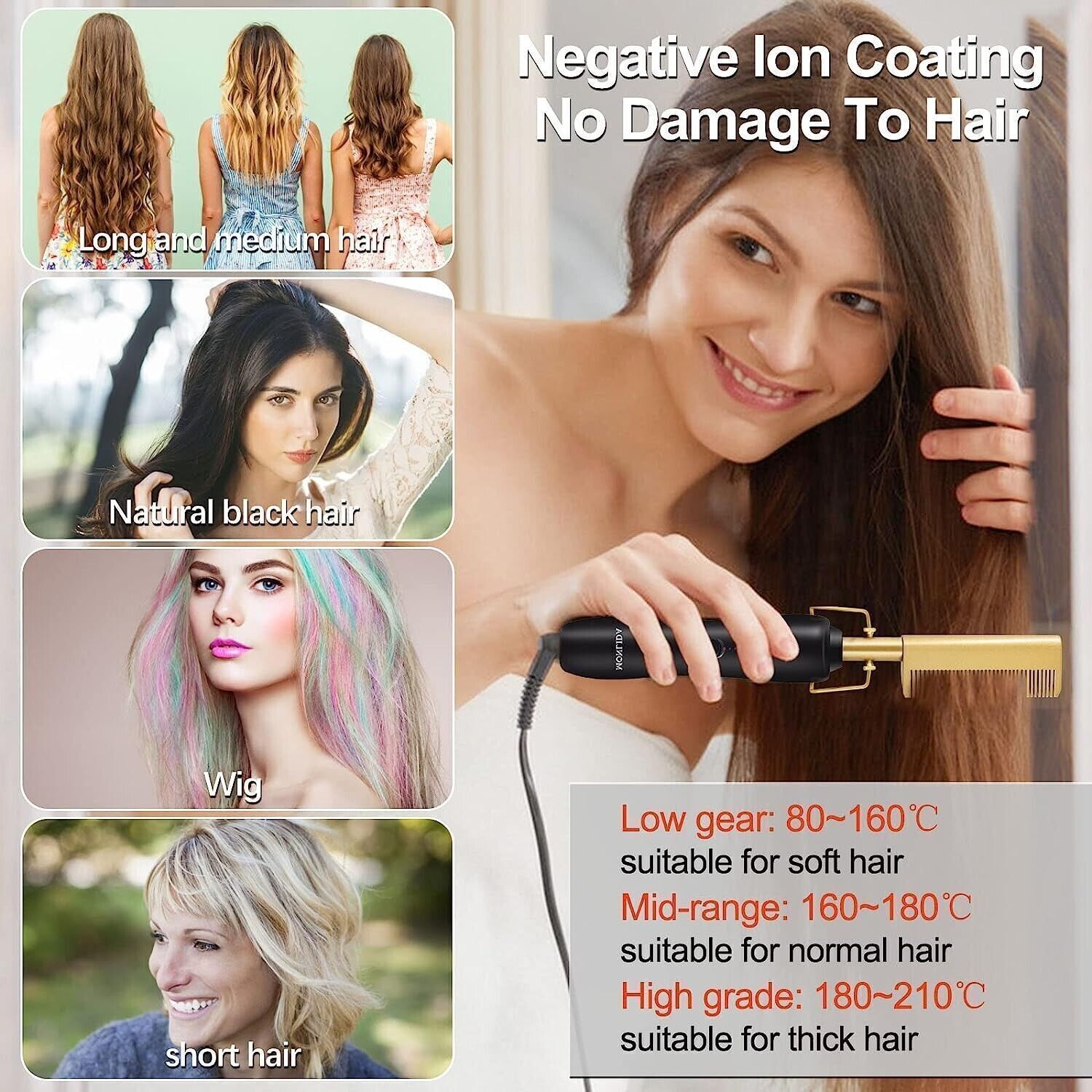 Spazzola lisciante multifunzione: Il pettine caldo in ceramica utilizza l'avanzata tecnologia di riscaldamento PTC, che può essere riscaldata rapidamente entro 30 secondi e raggiungere la temperatura più alta entro 3 minuti. Puoi lisciare i capelli/barba in pochi minuti. Spazzola i capelli più volte in piccole quantità, consentendo al pettine di entrare in pieno contatto con i capelli per un aspetto generale liscio o riccio.