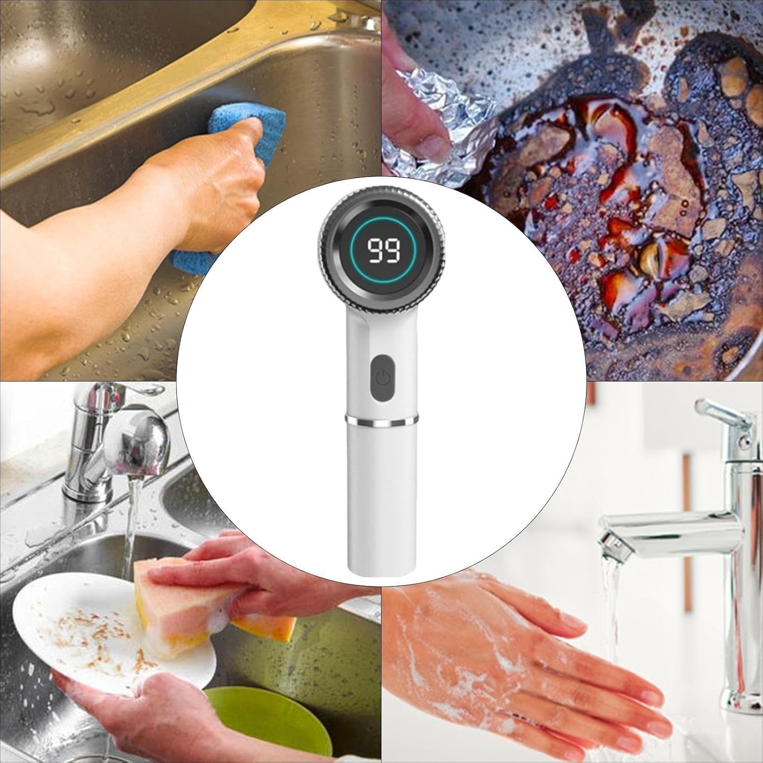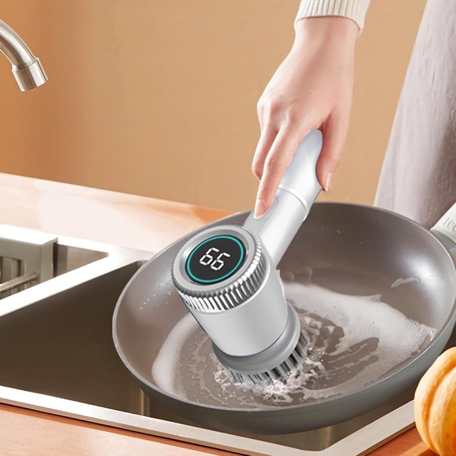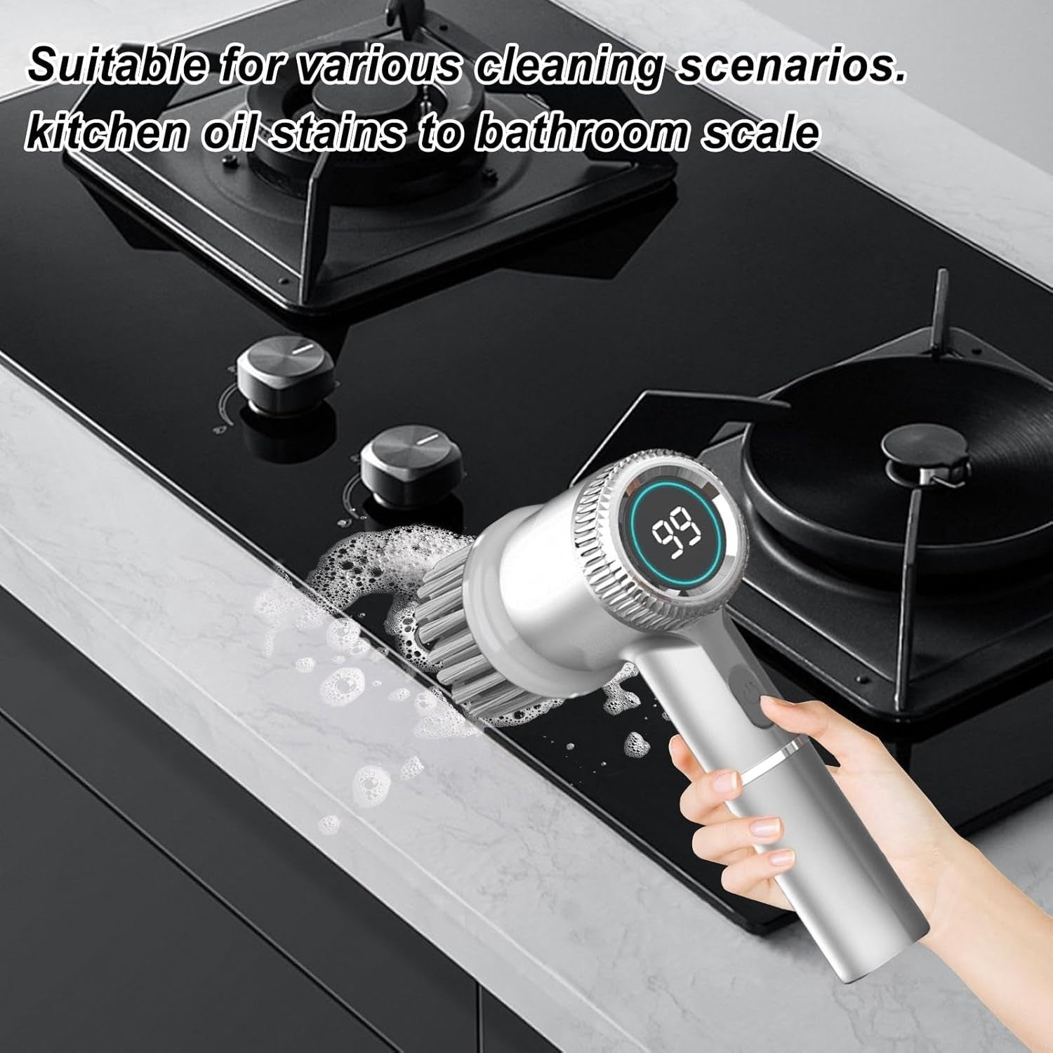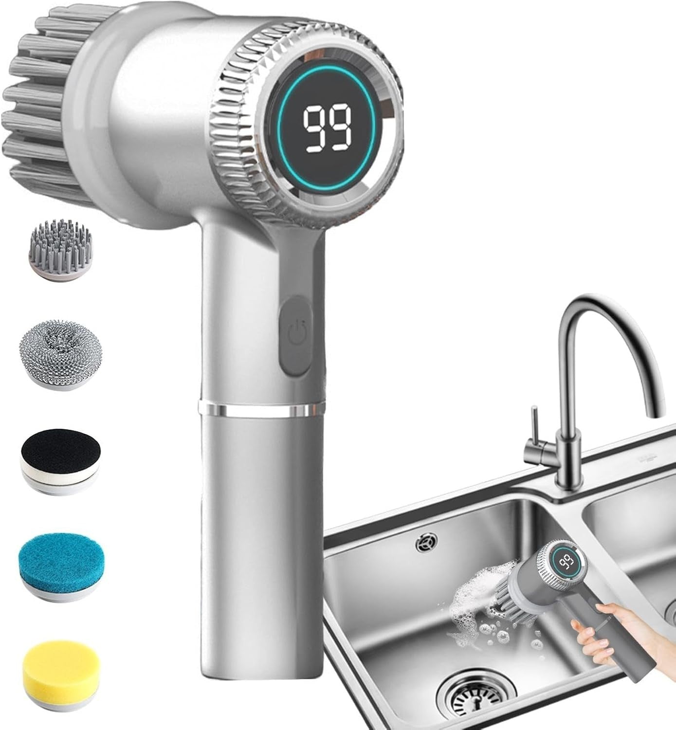 Design wireless: questa spazzola per la pulizia è progettata con una combinazione intelligente di tecnologie wireless e impermeabilità IPX7, rendendo le attività di pulizia più efficienti. Rimani aggiornato sul livello della batteria e sulla modalità corrente grazie al display digitale integrato.