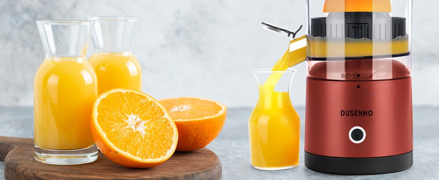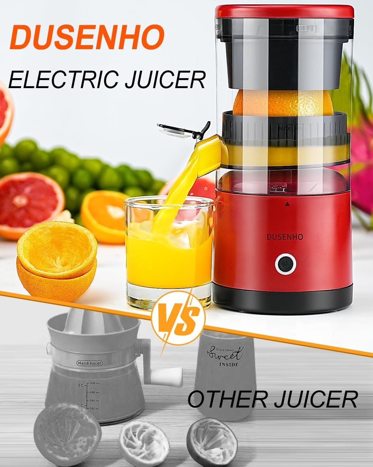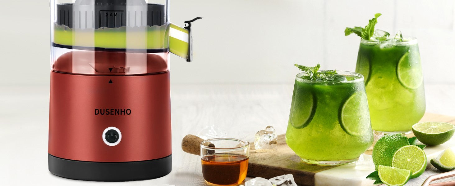 PERCHÉ SCEGLIERE IL PRESSA FRUTTA DUSENHO?.Il frullatore elettrico è noto per la sua qualità eccezionale e l'estetica accattivante. Azionato da un robusto motore da 45 watt, prepara facilmente una tazza di succo in soli 22 secondi, funzionando con un rumore minimo e rimanendo stabile senza oscillazioni o ribaltamenti. Goditi il piacere di offrire ai tuoi cari e alla tua famiglia succo appena spremuto ogni giorno!