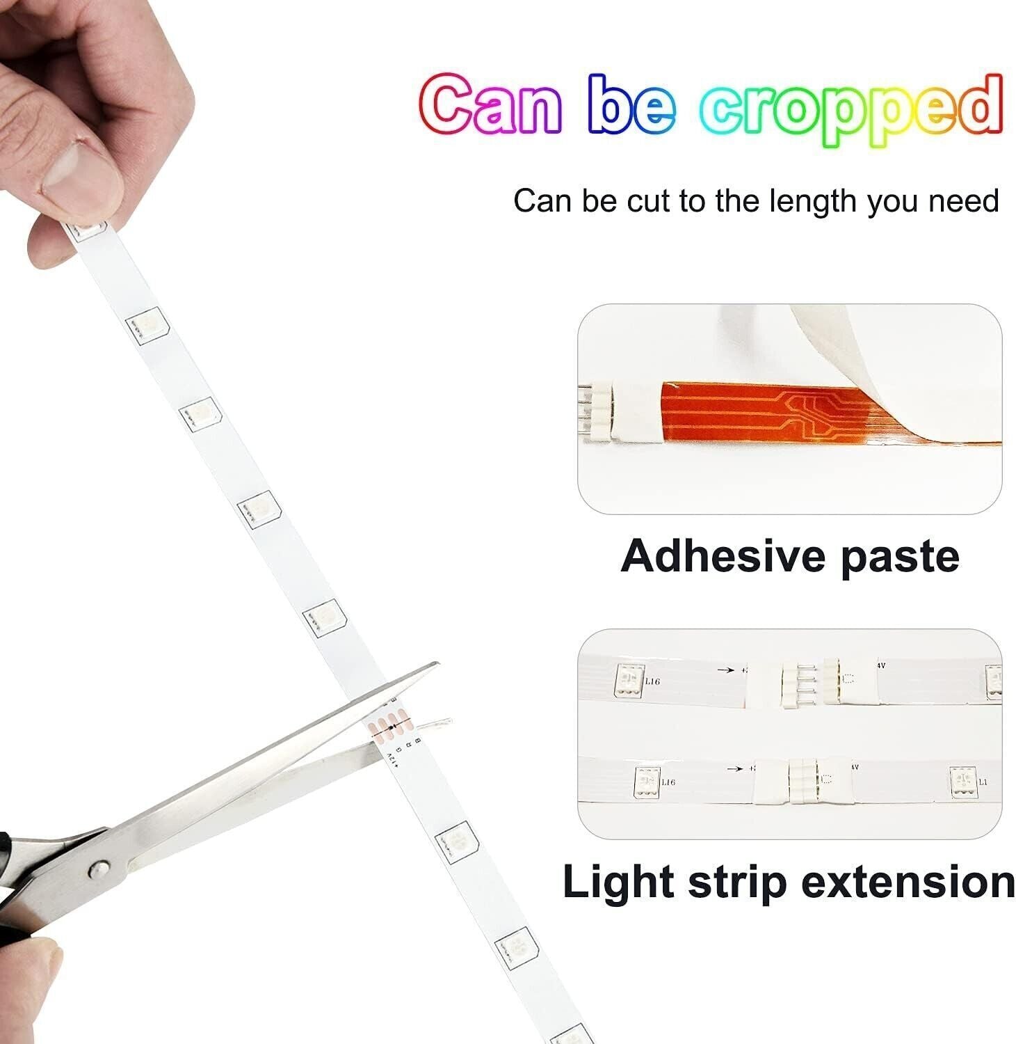 Flessibile e tagliabile: le luci di questa stanza possono piegarsi e piegarsi a piacimento. Puoi creare varie forme fai-da-te che offrono una buona flessibilità. La striscia di luci a led può essere tagliata lungo i segni di taglio. (Nota: i connettori non sono inclusi, è necessario acquistare connettori aggiuntivi a 4 pin per la riconnessione).