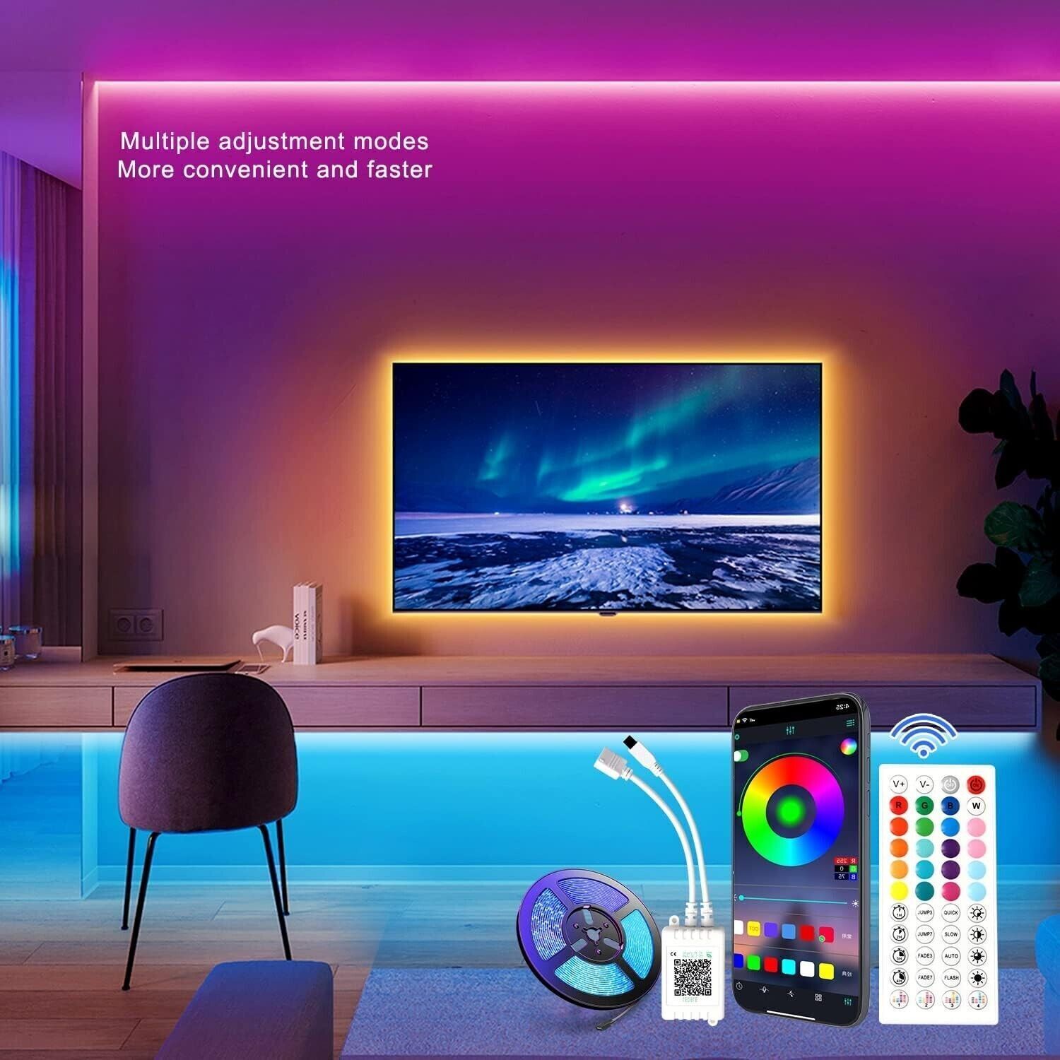 Strisce LED FUPT, (5 m) Strisce luminose intelligenti con telecomando di controllo app, luci LED RGB 5050 per camera da letto, luci cambia colore per sincronizzazione musicale TV per feste in camera