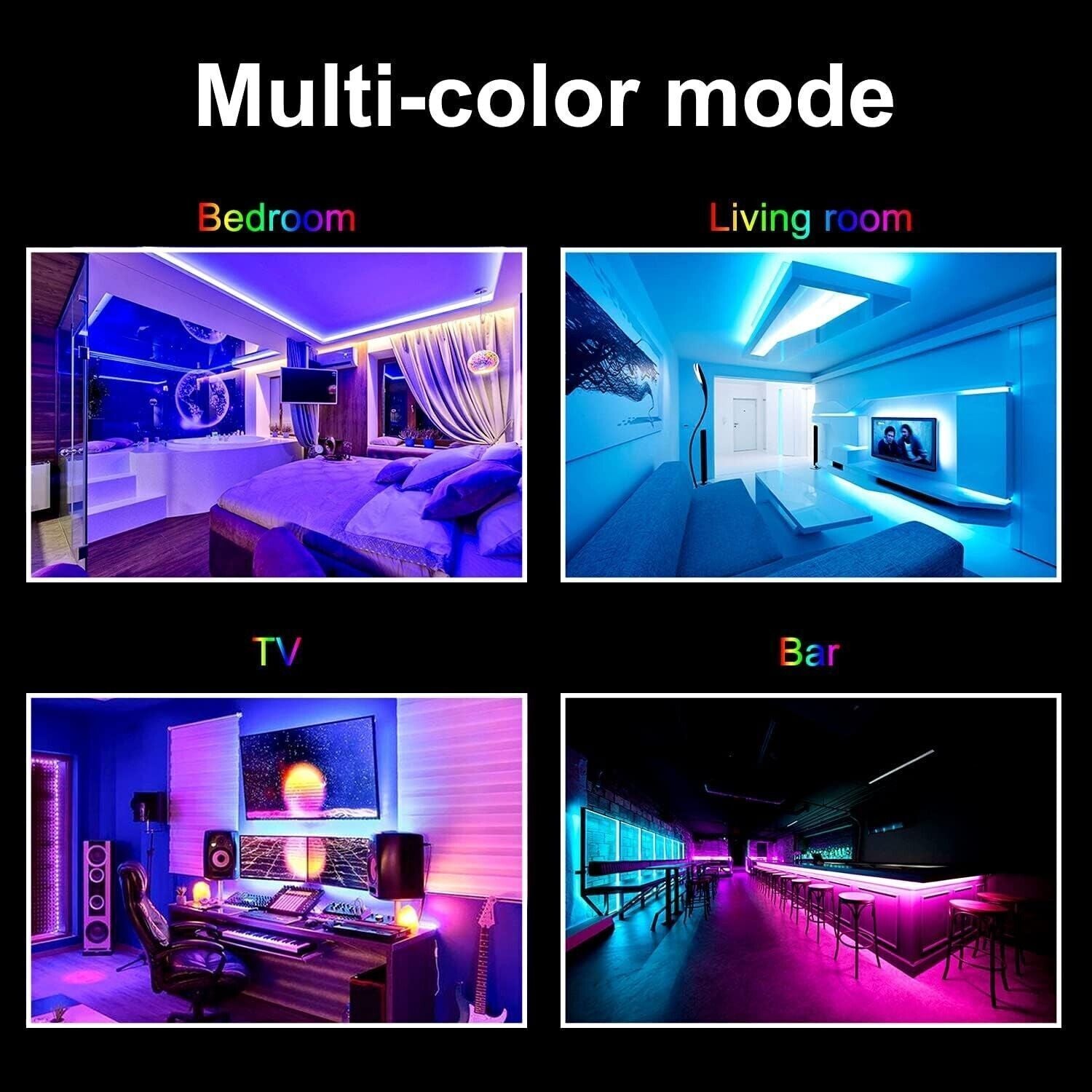 Molteplici modalità di illuminazione: queste luci a LED non hanno solo il colore rosso, verde, blu e bianco di base, ma anche il cambio di colore multiplo controllato dal telecomando. 6 modalità fai da te, 8 modalità di illuminazione. Puoi anche regolare la luminosità come preferisci.