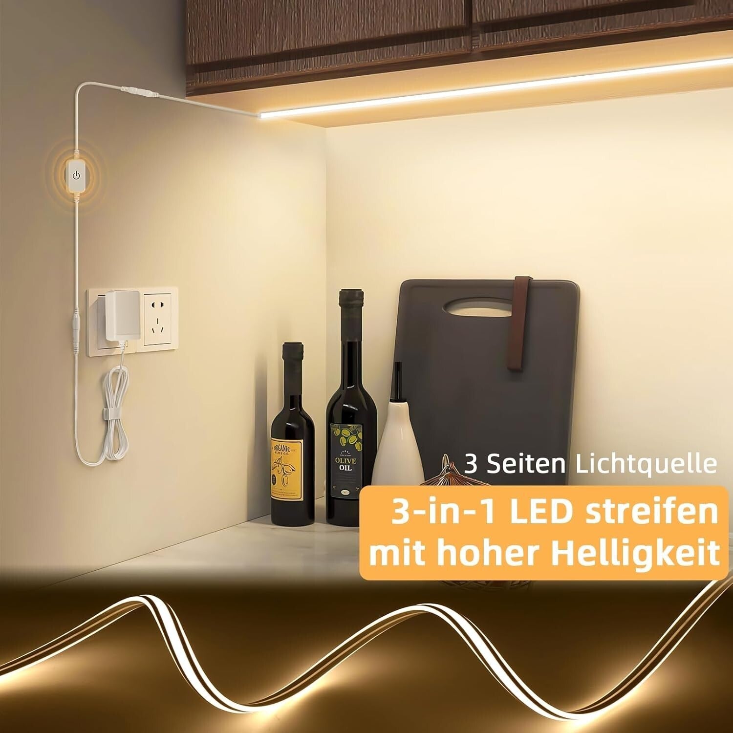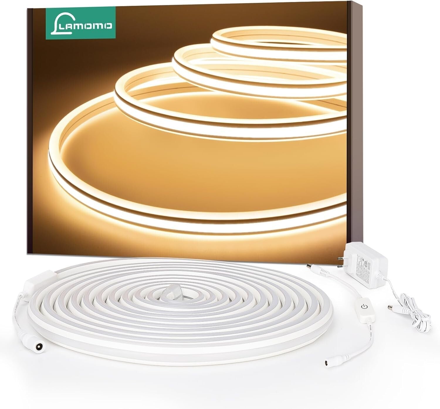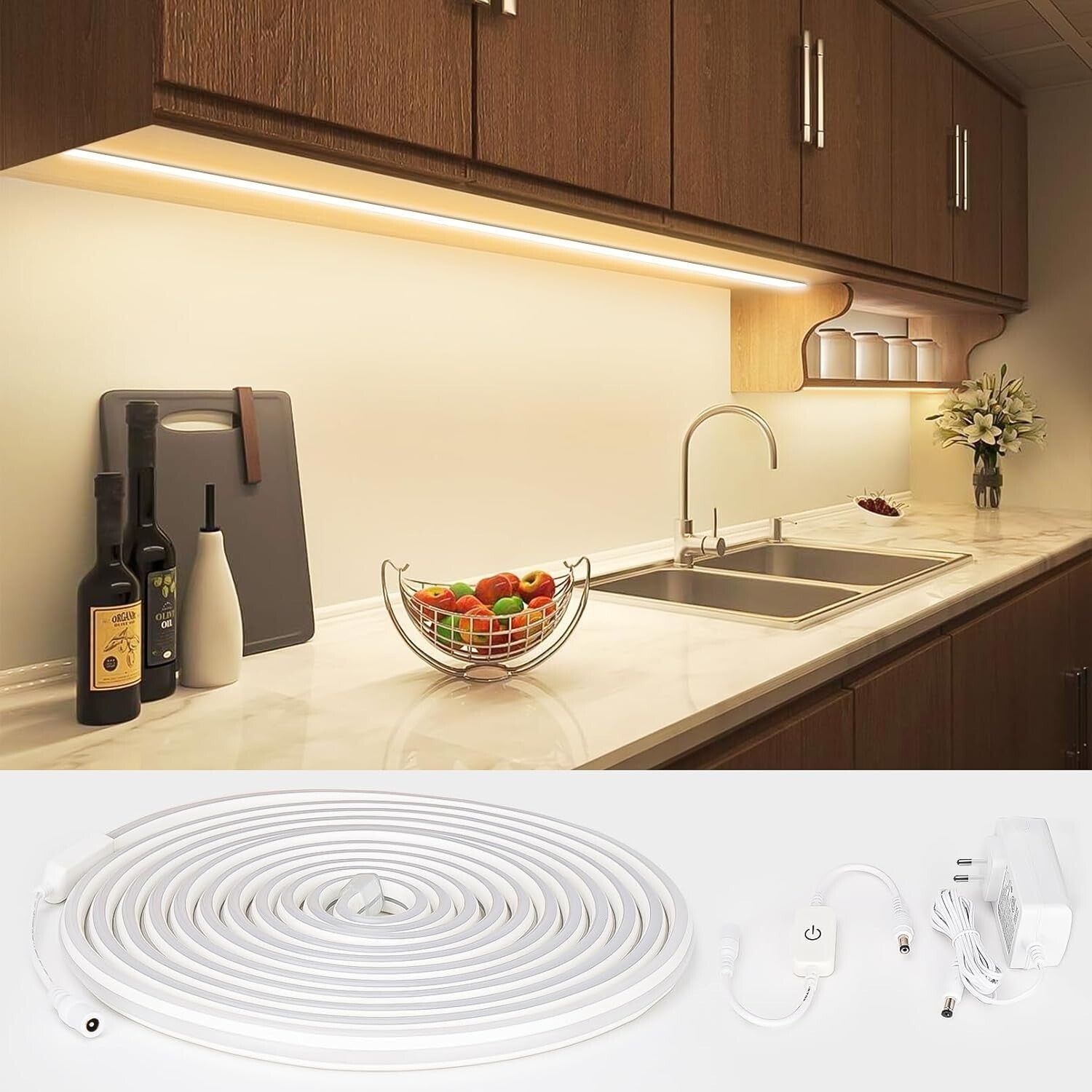 Lamomo LED Sottopensile 2 m Bianco Caldo, Striscia LED Cucina 3000 K, Striscia LED in Silicone 24 V Bianco Caldo Flessibile, Striscia LED Illuminazione Sottopensile per Mensole Interne, Vetrine, Luce Cucina [Classe Energetica F]