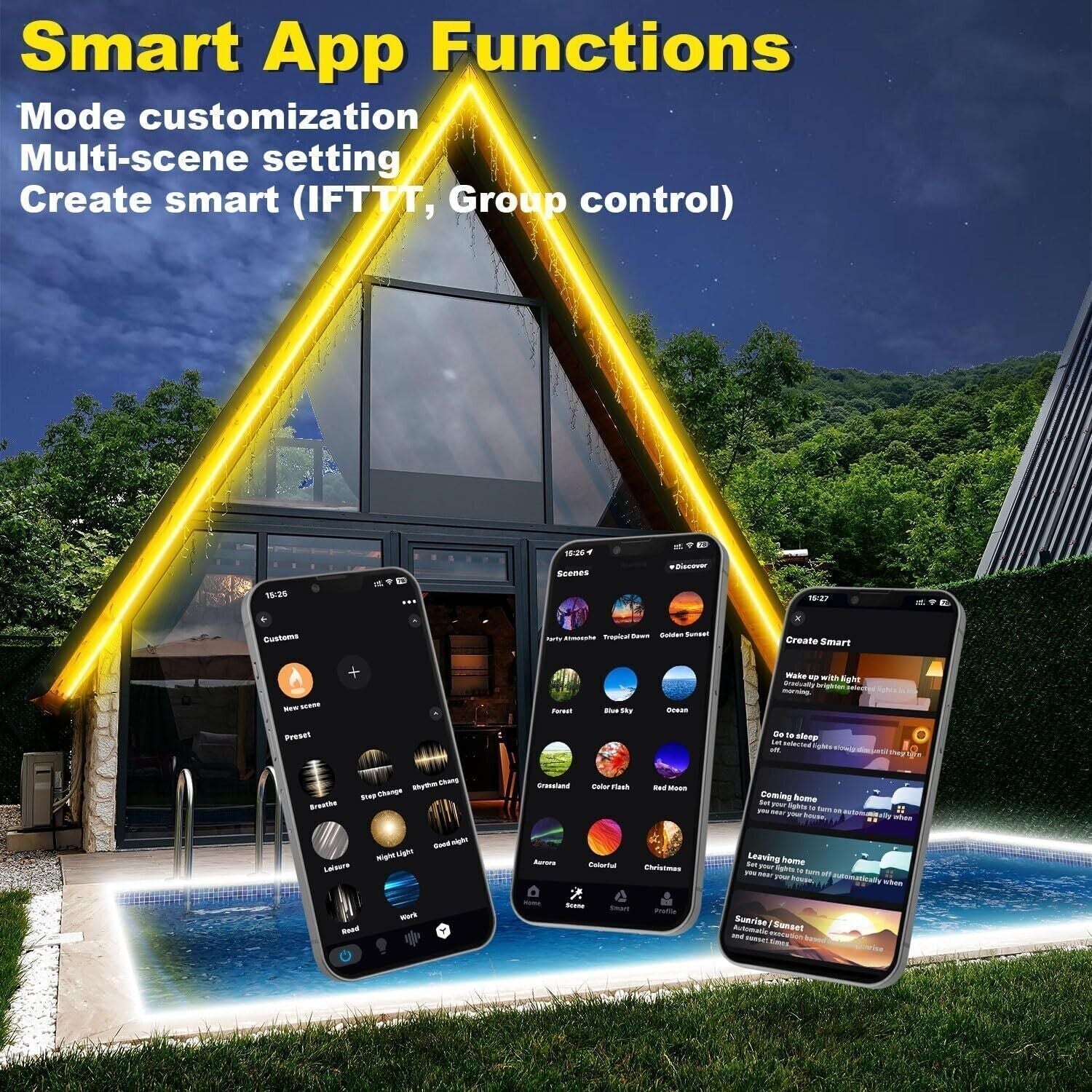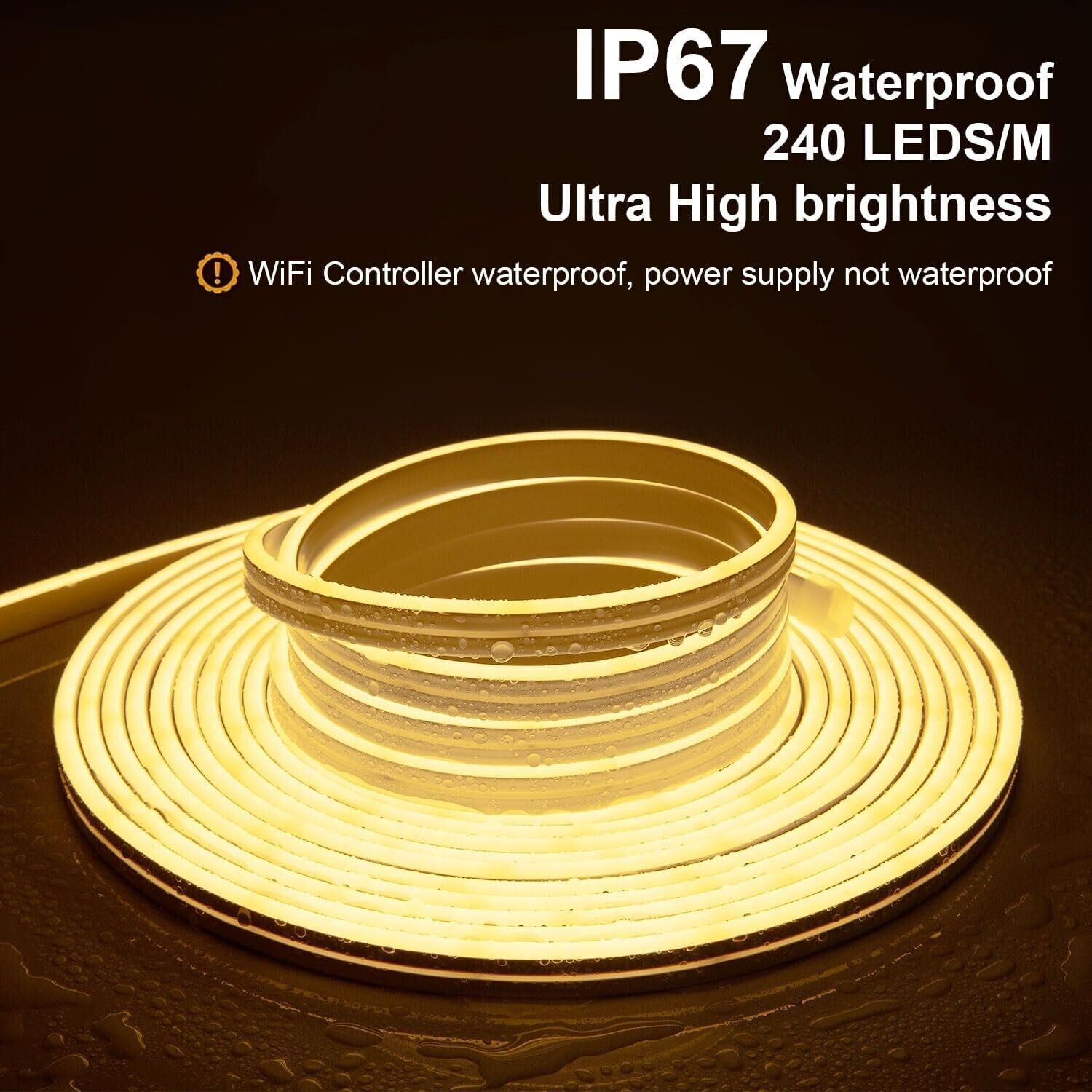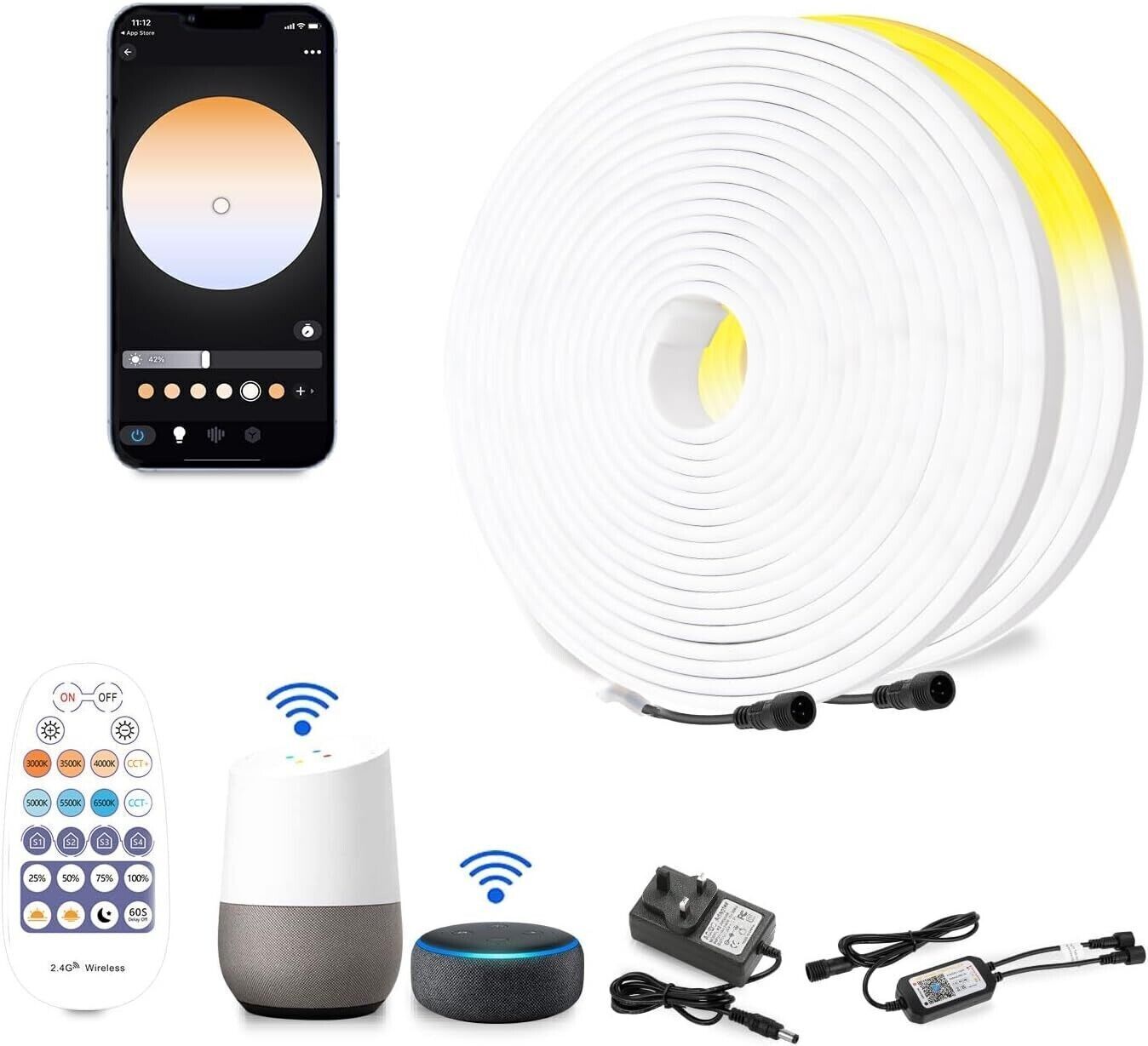 LED bianco flessibile 3000 K-6500 K. Dimmerabile: eccezionale 240 LED per metro, senza punti (bianco caldo + bianco freddo), la corda al neon è flessibile e brilla con una maggiore luminosità. La sua temperatura di colore regolabile da 3000k a 6500k in base al tuo umore. Il wifi intelligente supporta il controllo online e il controllo vocale con Alexa, Google Assistant. Il controller ha anche funzioni di memoria personalizzabili in app.