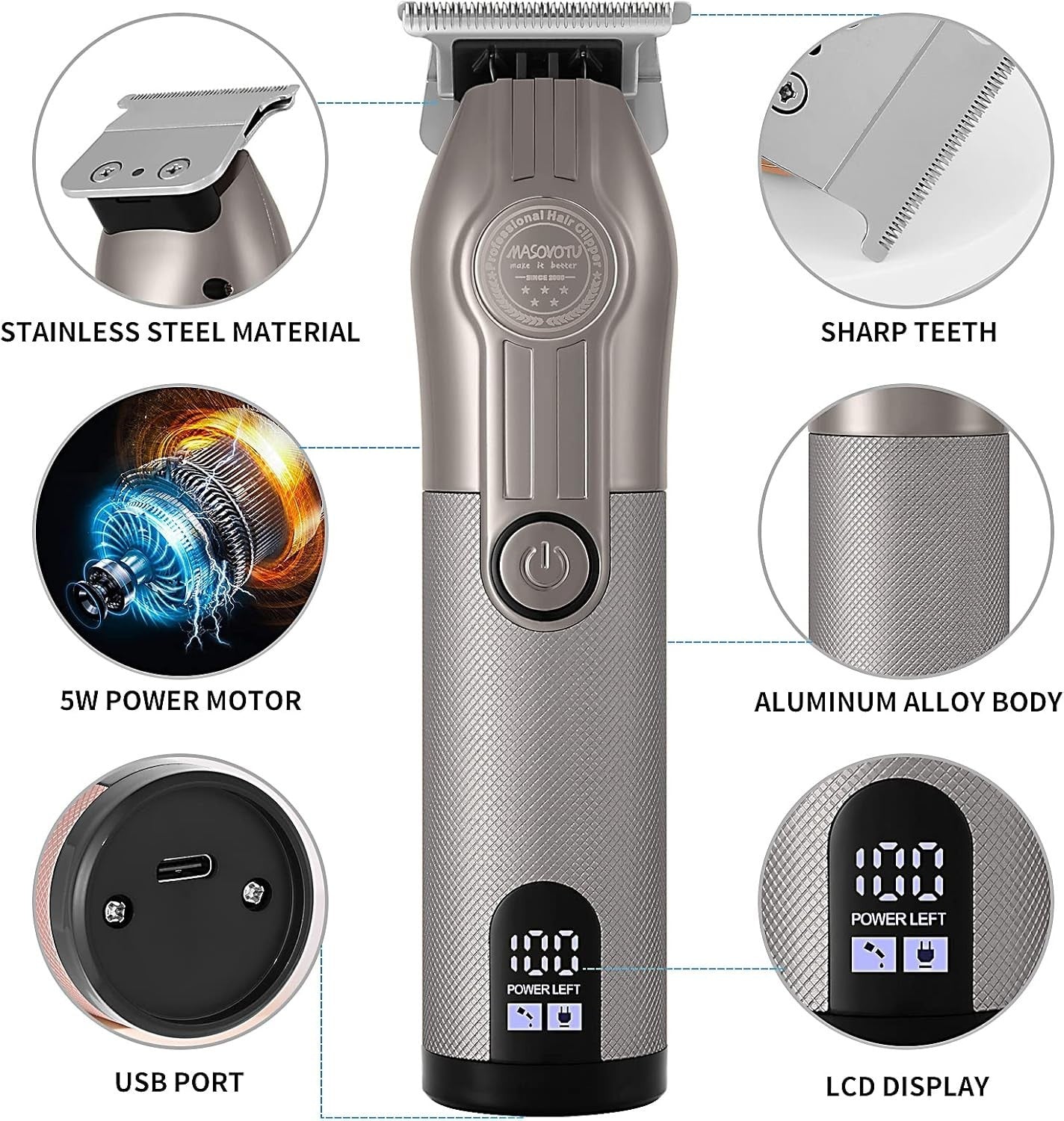 Tagliacapelli professionale per barbiere ricaricabile senza fili MASOVOTU