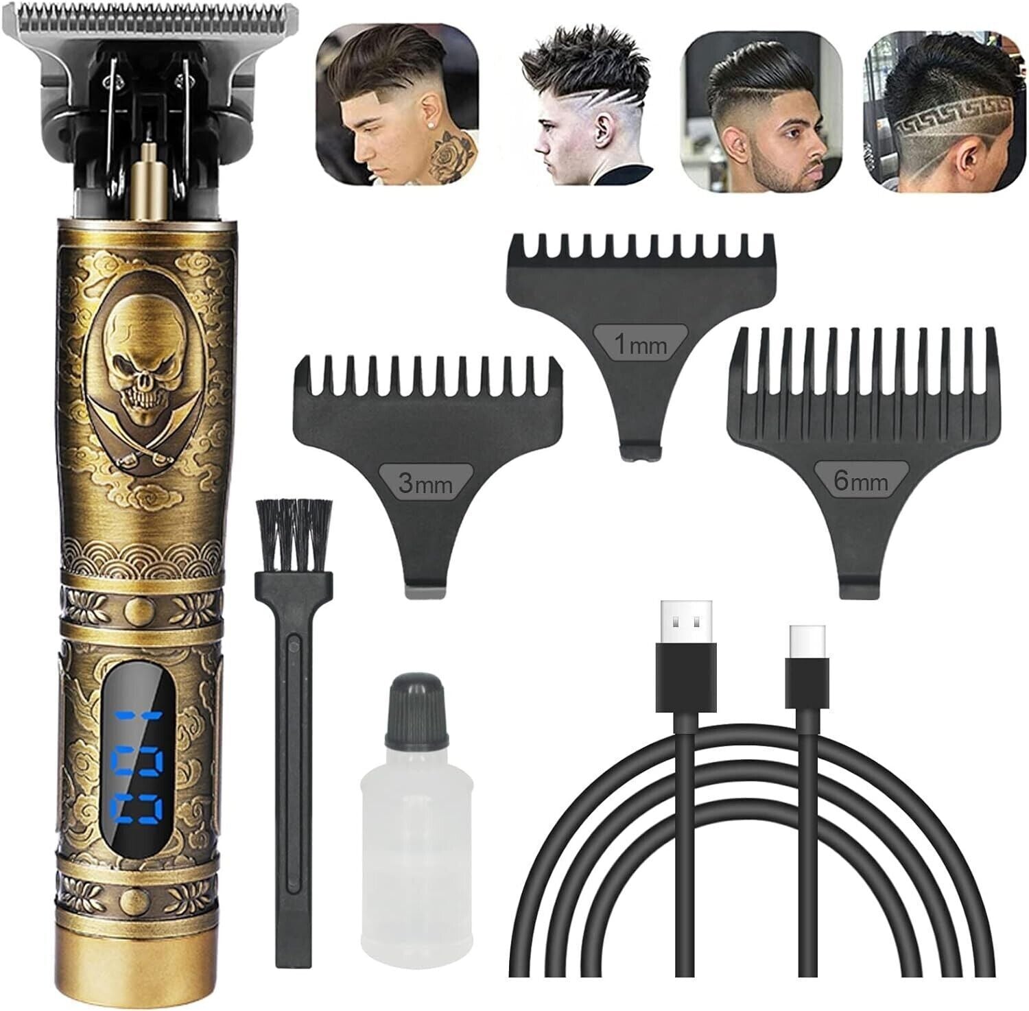 Tagliacapelli Uomo per la Barba, Lama a T, Rasoio professionale a Basso Rumore e Ricaricabile