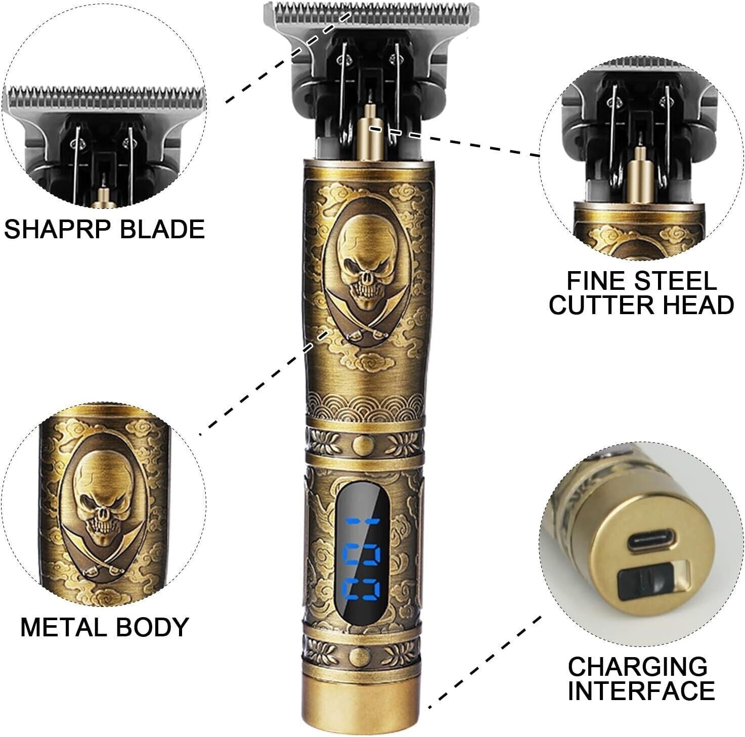 Lama a T super affilata: il tagliacapelli è dotato di una lama di precisione in acciaio inossidabile autoaffilante, che viene affilata automaticamente, impermeabile e facile da rimuovere. Il tagliacapelli a forma di T ti consente di progettare facilmente la tua pettinatura e modellare i bordi. Anche se si tagliano i peli più spessi, non verrà strappato alcun pelo. Il design del bordo ottuso a forma di R stabilisce un contatto delicato con la pelle e non la danneggia.