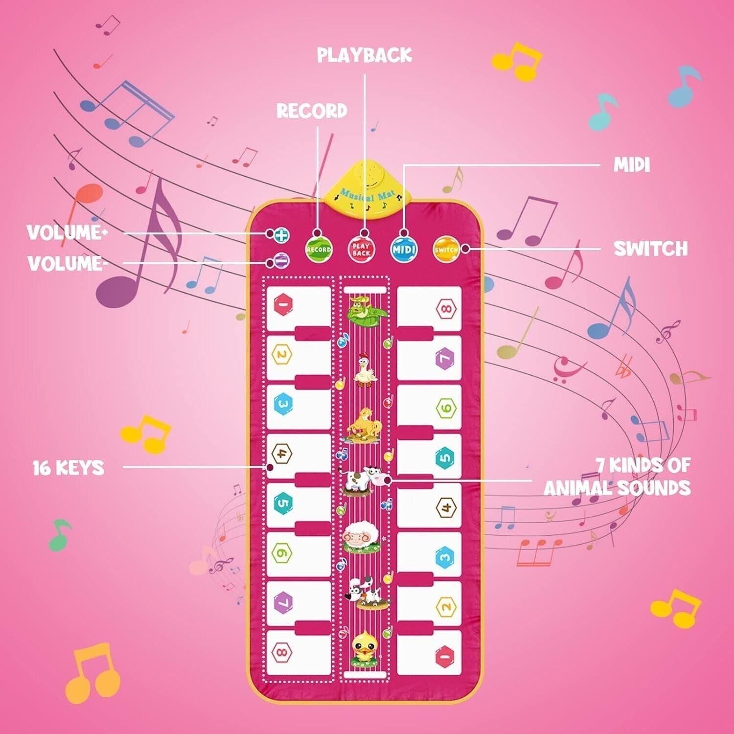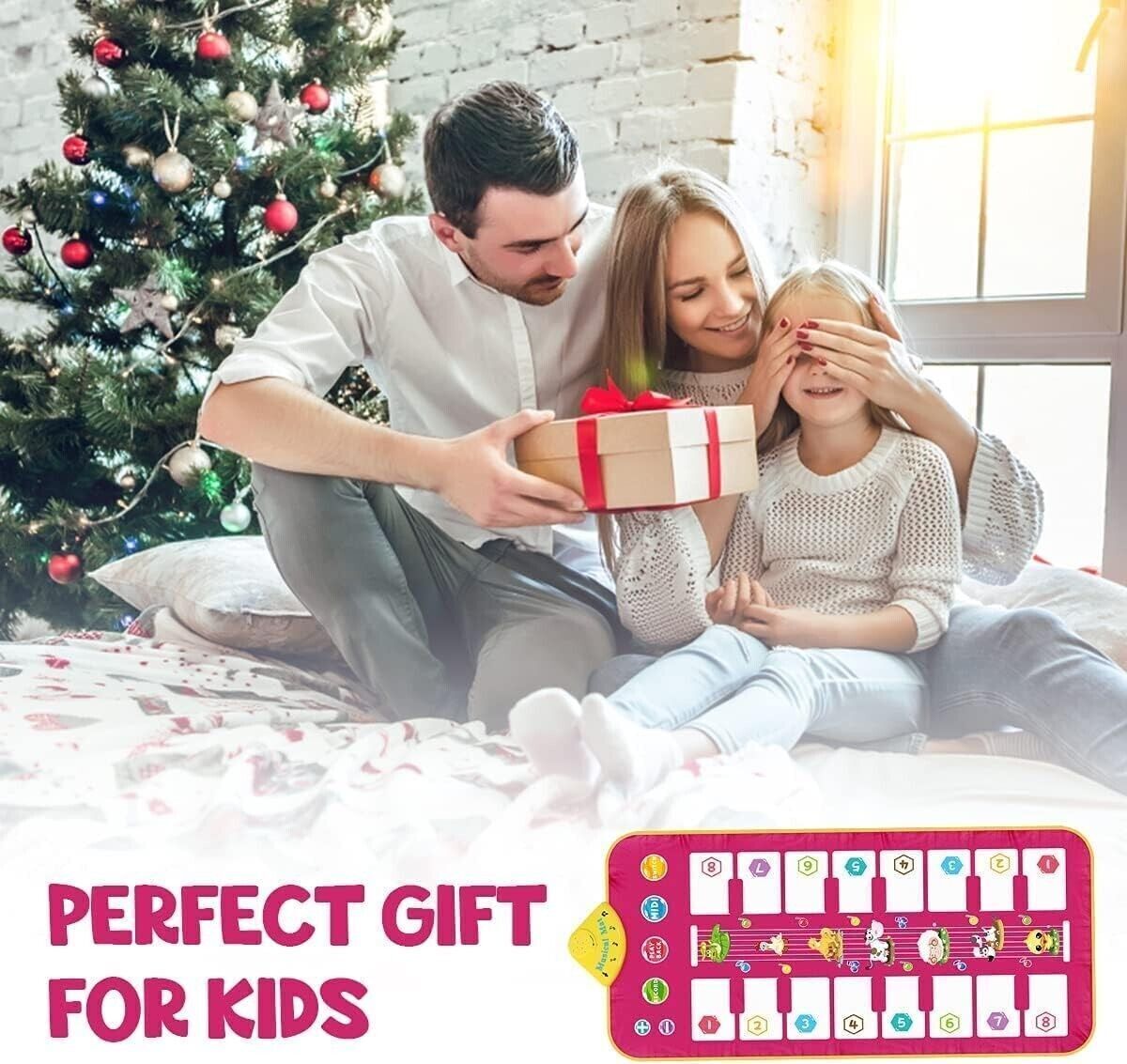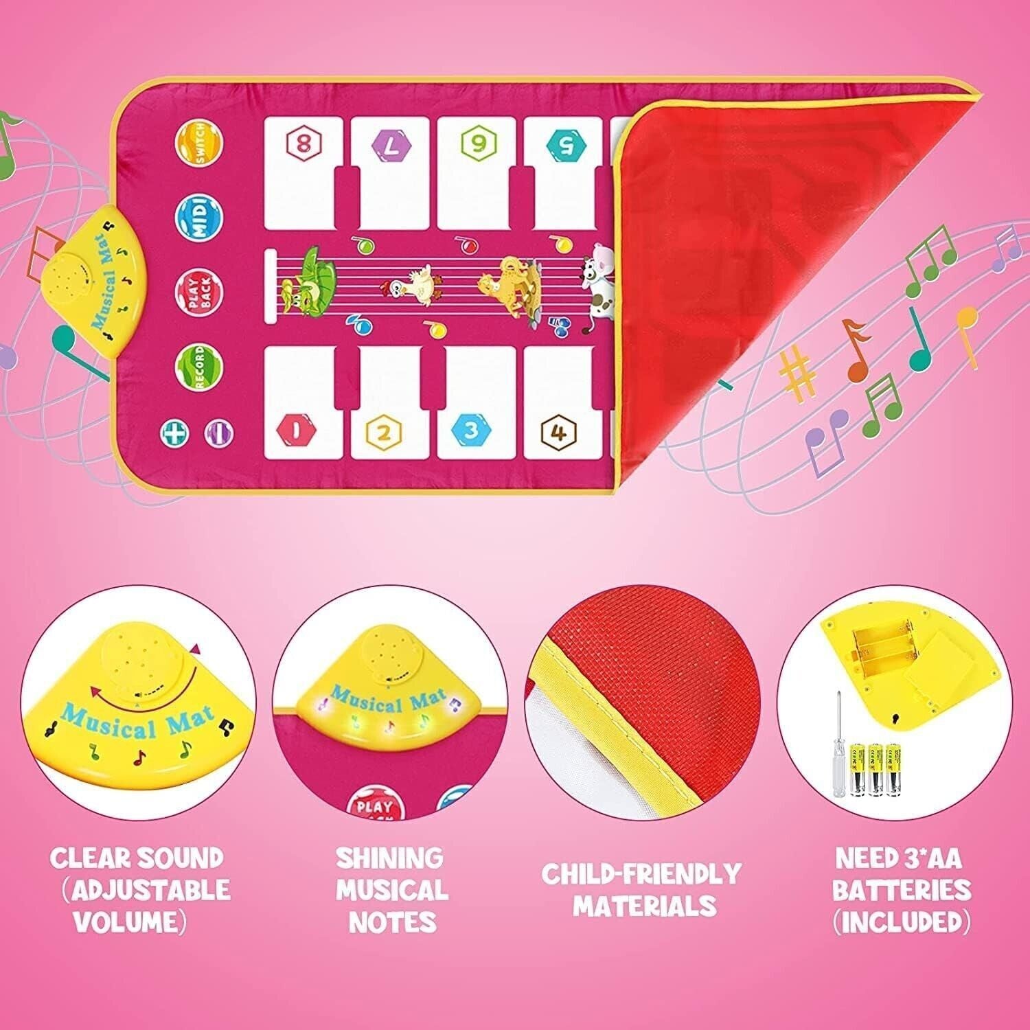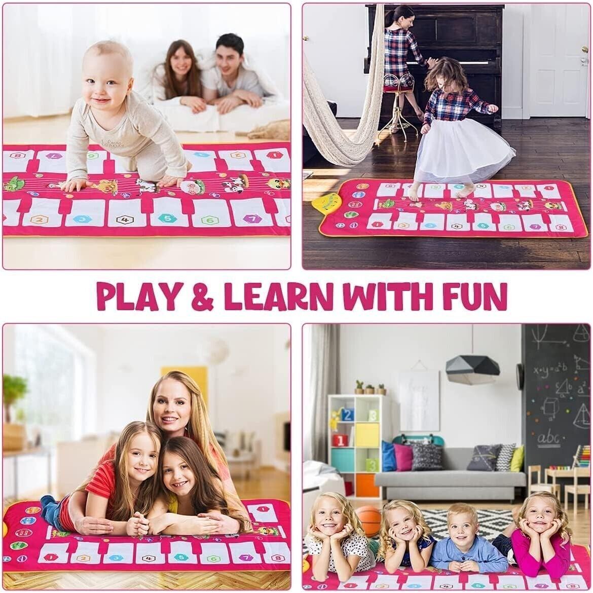Tappetino per Tastiera Bilaterale: Il tappetino per pianoforte rosso rosa misura 110 x 52cm ed è progettato con una tastiera a bilaterale, che consente a due bambini di giocare contemporaneamente. Ha un totale di 16 tasti sensibili al tocco che offriranno infinite ore di divertimento! Ottimo per le interazioni genitore-figlio.