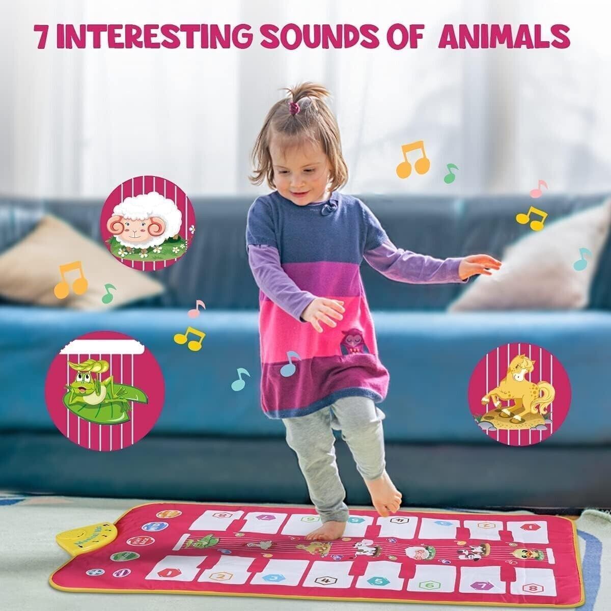 7 Suoni di Animali e 8 Canzoni: Il piccolo sarà divertito da questi vivaci suoni e canzoni di animali! Il tappeto da musicale presenta 7 simpatici motivi animali (rana, gallo, cavallo, mucca, pecora, cane, anatra) e 8 melodie gioiose. Aiuta i bambini a conoscere diversi animali e a stimolare il loro udito.