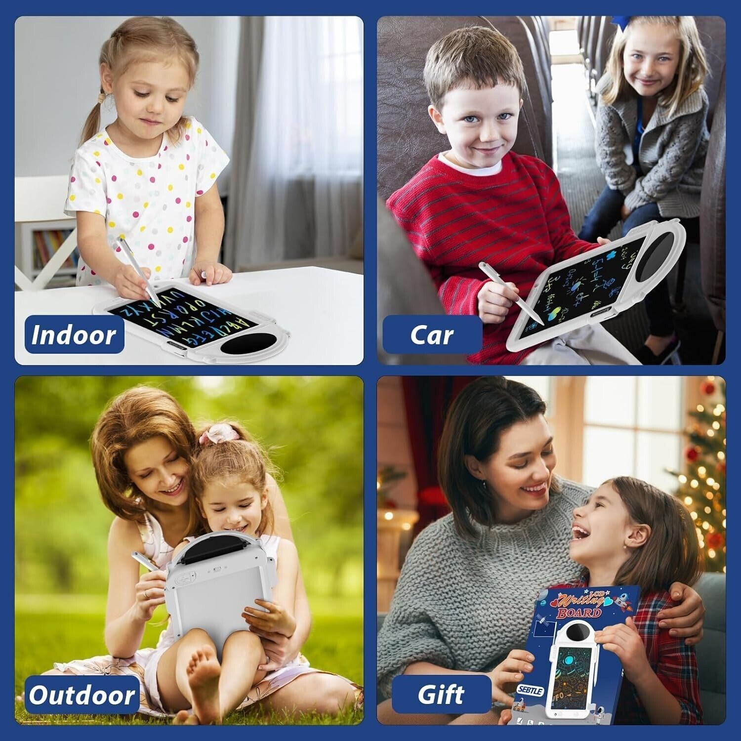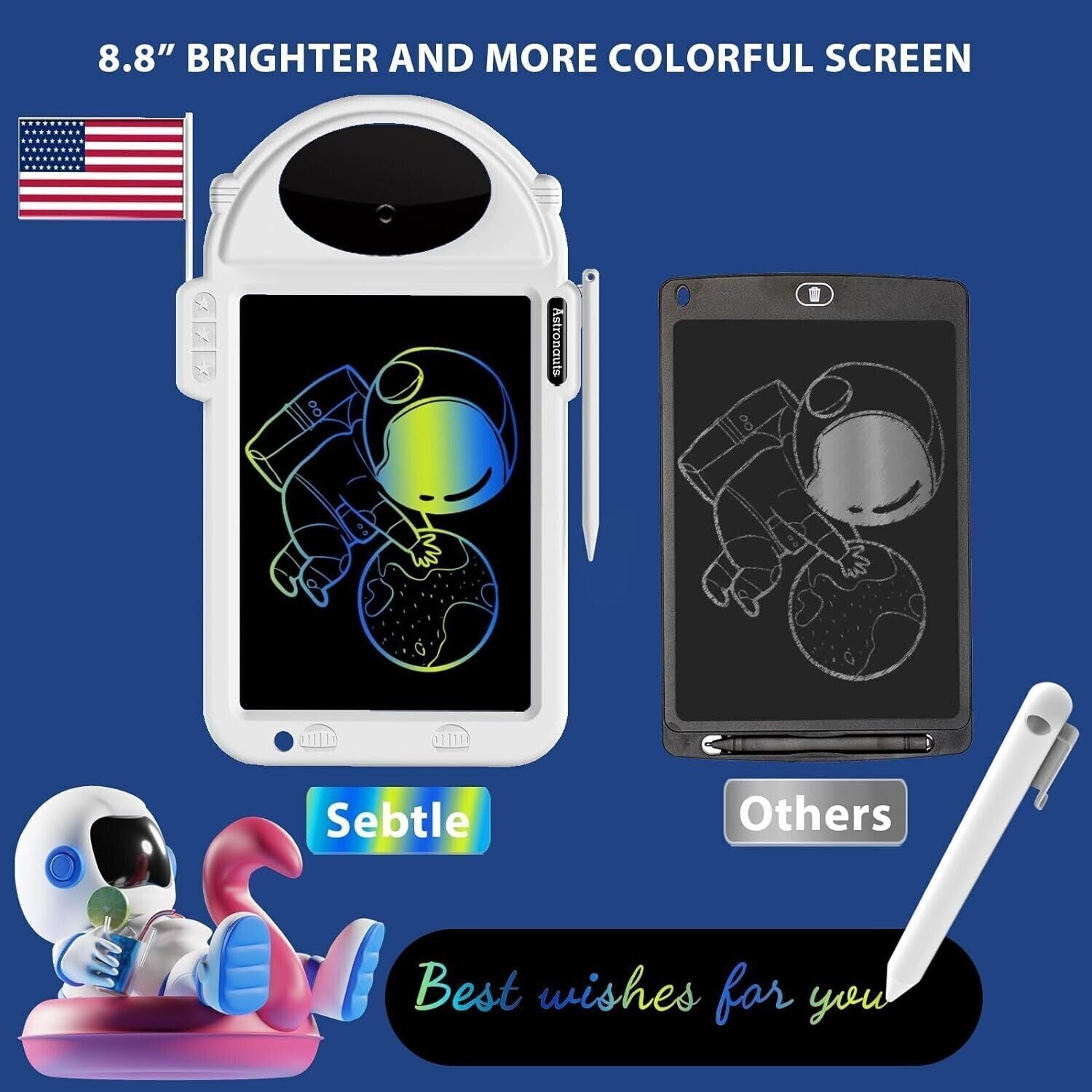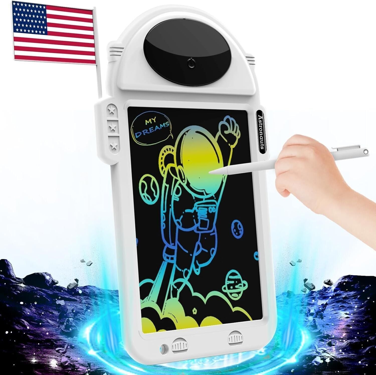 Elegante tavolo da disegno LCD: Con uno speciale design da astronauti, questo tavolo da disegno potrebbe sicuramente essere il regalo più unico per i bambini. L'ultimo schermo LCD a colori e la più recente tecnologia di visualizzazione con rilevamento della pressione, consentono ai bambini di dipingere e scrivere in modo più fluido sulla tavoletta da disegno. Disegnando con intensità diversa, i bambini possono modificare lo spessore delle linee, rendendole vivide e luminose sullo schermo.