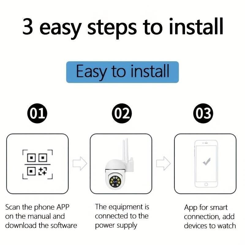 Basta una telecamera wifi per coprire tutti gli angoli che si desidera monitorare. Puoi accedere da remoto all'intera stanza durante il giorno o di notte con il tuo telefono / dispositivo mobile.