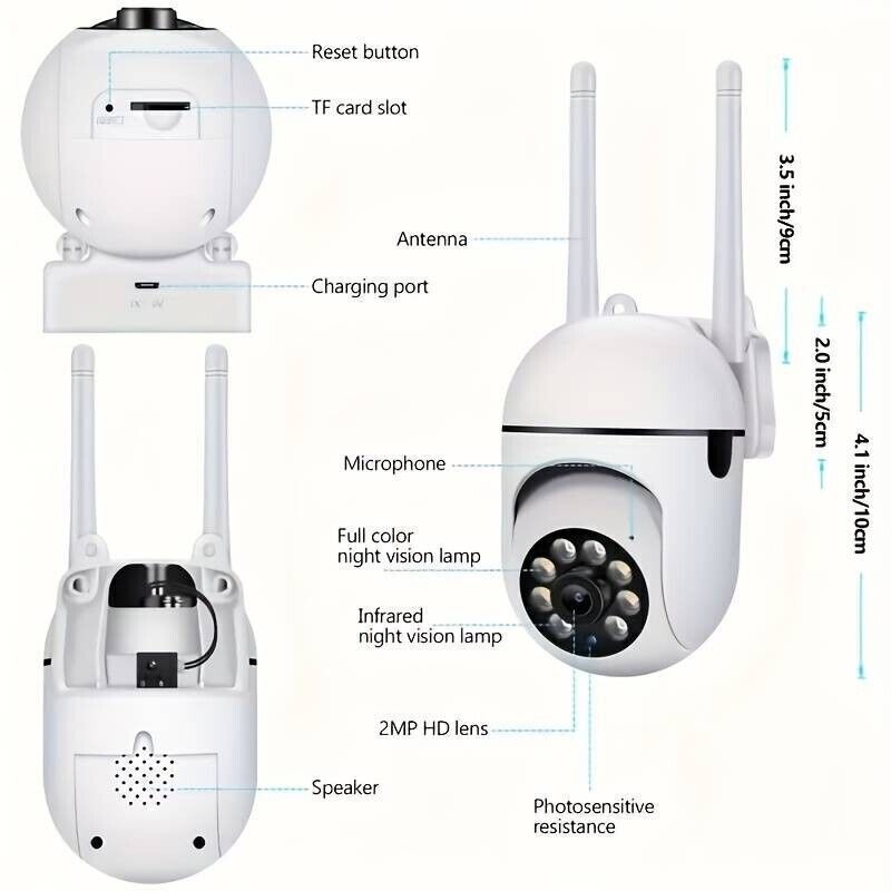 Ha anche la modalità di visione notturna della lampada bianca, la doppia luce rende la fotocamera a colori che cattura un'immagine o un video completo e più chiaro per te.