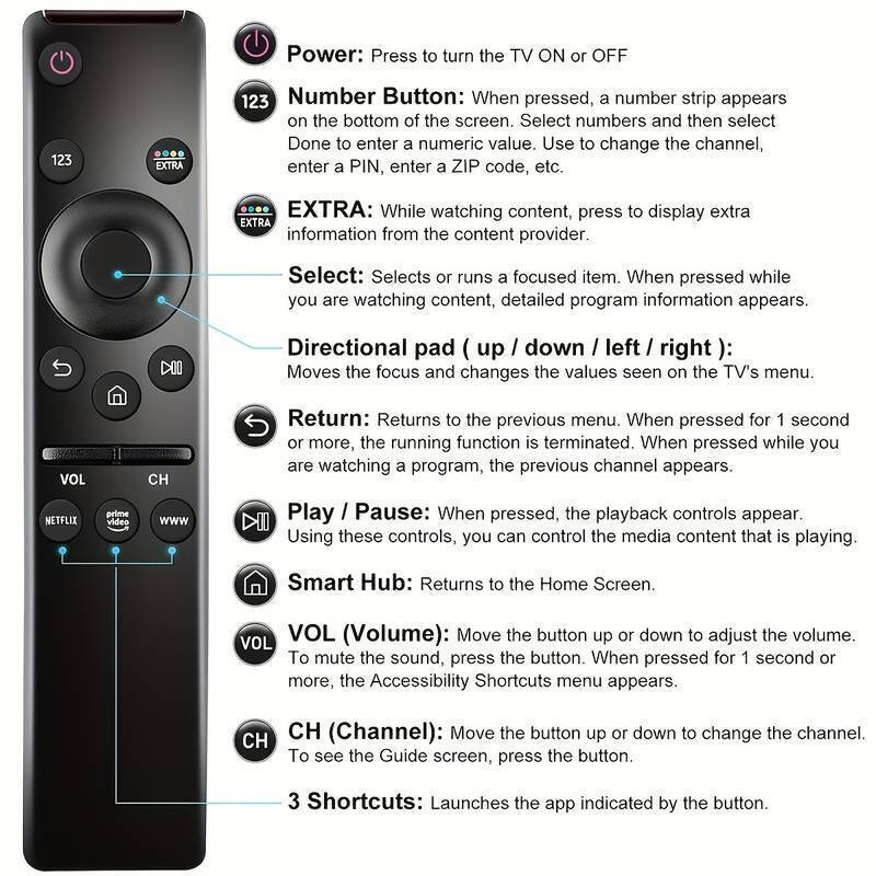 Telecomando Universale Universal Remote Control Compatibile Per Tutti I TV Samsung LED QLED UHD SUHD HDR LCD Frame Curved Solar HDTV 4K 8K 3D Smart TV, Con Pulsanti Per Netflix, Prime Video, WWW