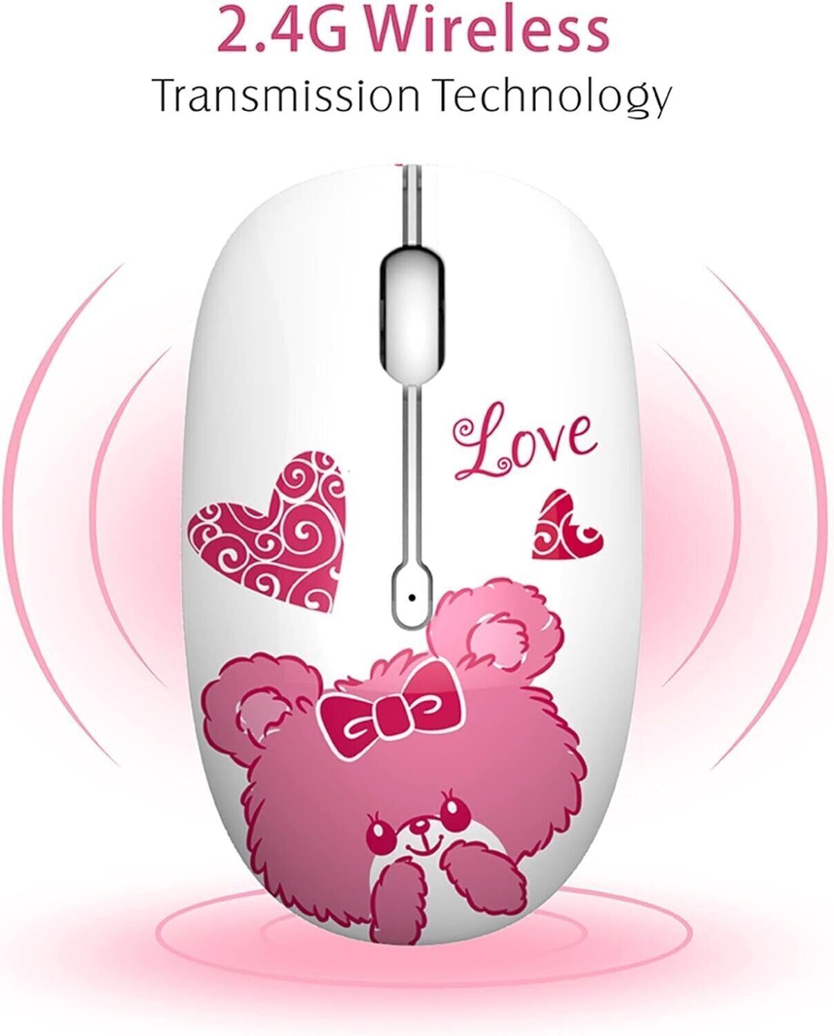 TENMOS M101 Mouse Wireless Simpatico Mouse Silenzioso per Computer con Ricevitore USB, Mouse da Viaggio Wireless Ottico 2.4G 1600 DPI per Laptop, Notebook, PC, Computer (Orso)