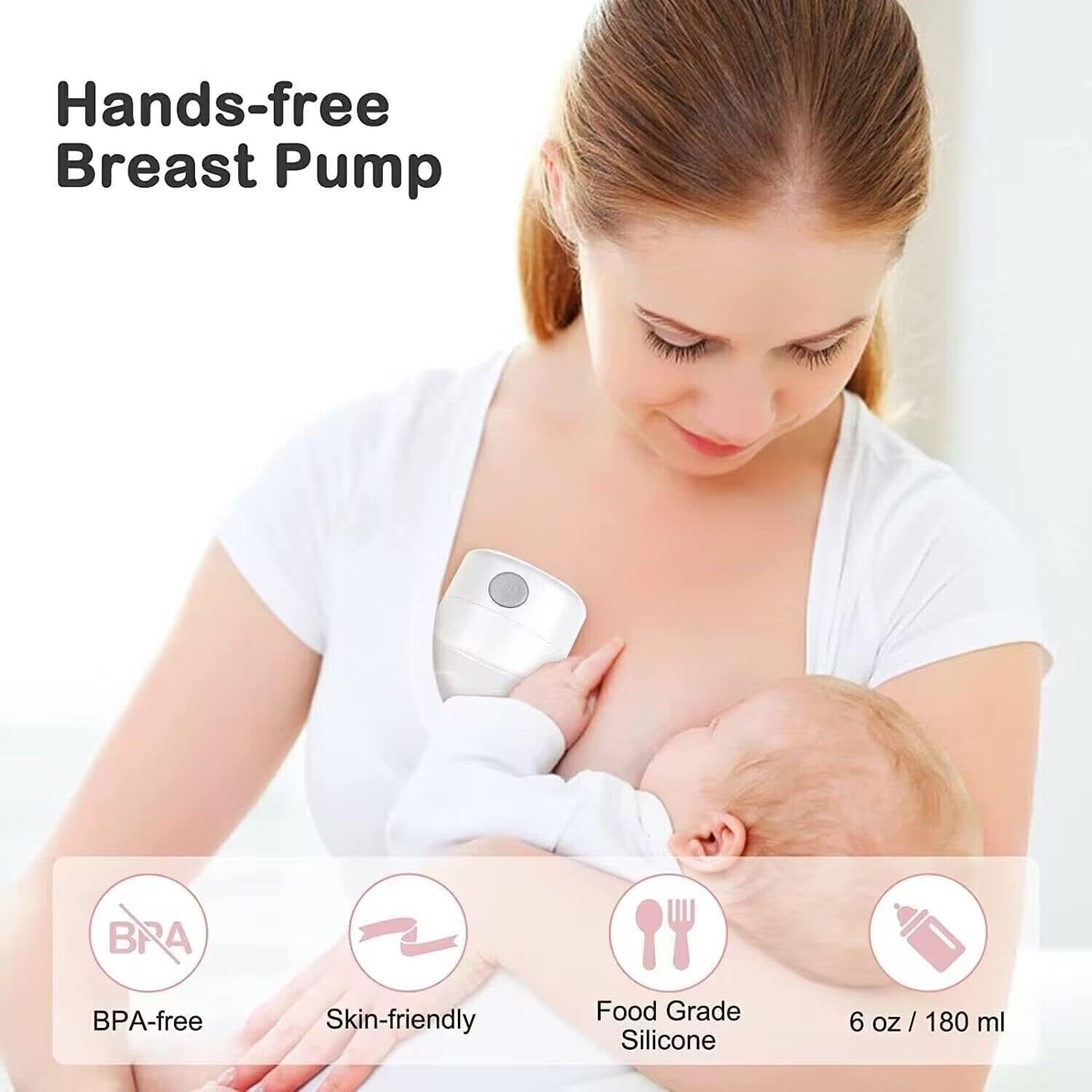 Sicurezza del materiale. Il tiralatte wireless Hands Free è realizzato in silicone alimentare. Facciamo del nostro meglio per garantire la sicurezza di mamma e bambino.