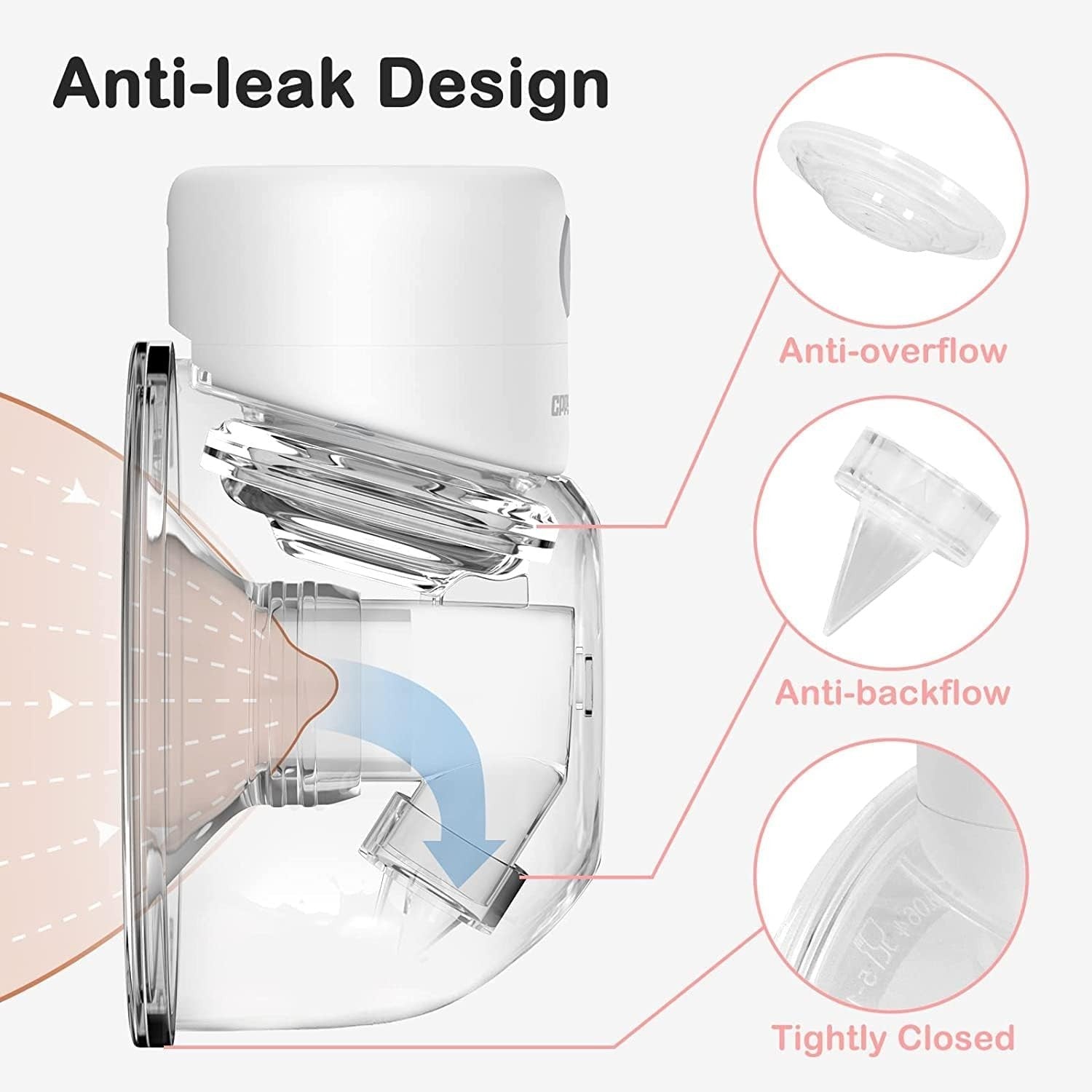 Design a prova di perdite. Questo tiralatte è dotato di un sistema anti-traboccamento e anti-ritorno, per evitare che ogni goccia di latte materno vada sprecata. I componenti sono assemblati saldamente e, se utilizzati correttamente, il latte materno non può fuoriuscire. In caso di perdite di latte, verificare che il tiralatte sia assemblato correttamente.