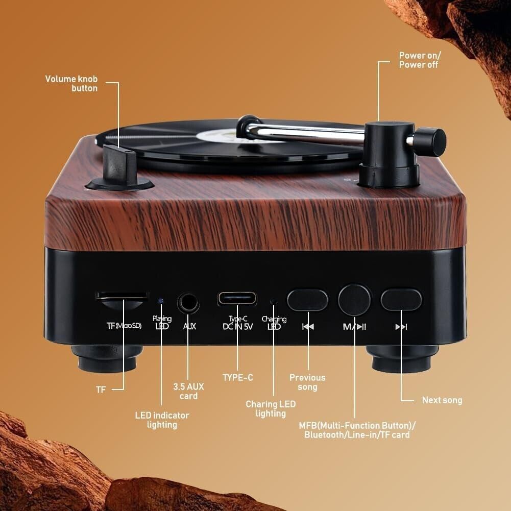 Topretty Bluetooth Speaker, Turntable Design Bluetooth Speaker Altoparlanti