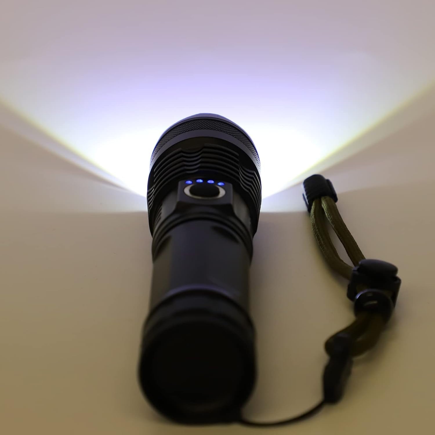 Maggiore luminosità: la batteria 22650 integrata con una capacità di 5500 mAh garantisce un'illuminazione ad alta luminosità che può arrivare fino a 500 m, molto nitida da vedere.