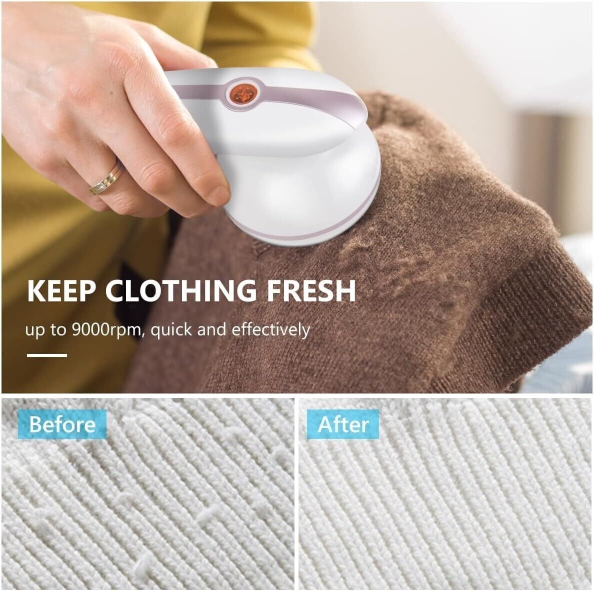 Depilatore Veloce e Potente: Levapelucchi elettrico rasoio ha un motore potente e 6 lame affilate, funzionamento silenzioso e ad alta velocità, le lame sono più lunghe del 60%, che possono coprire uniformemente una vasta area, migliorare l'efficienza del lavoro e risparmiare tempo. Fino a 9000 giri/min, la rete di diverse dimensioni sulla copertura della rete può fissare accuratamente varie dimensioni di palline di pelo, senza omissioni e pulite. Dare ai tuoi vestiti un nuovo look.