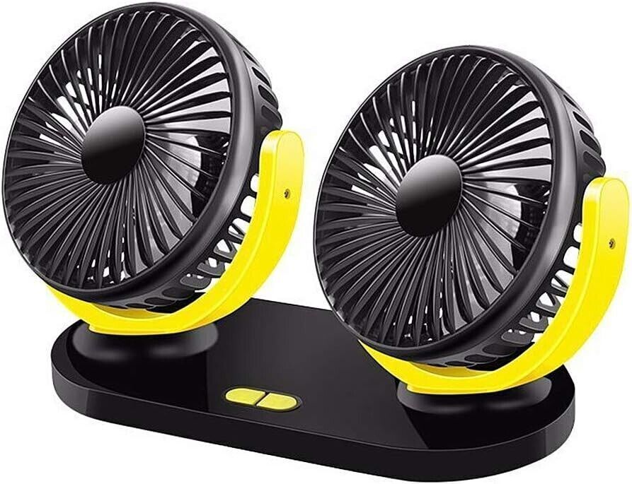 USB Mini Ventilatori 10 Volt Doppia Testa Ventola di Raffreddamento Ventilatore per auto Tre Velocità Regolabile e Rotazione Manuale a 360º+180º per Casa Ufficio Campeggio di Furgoni