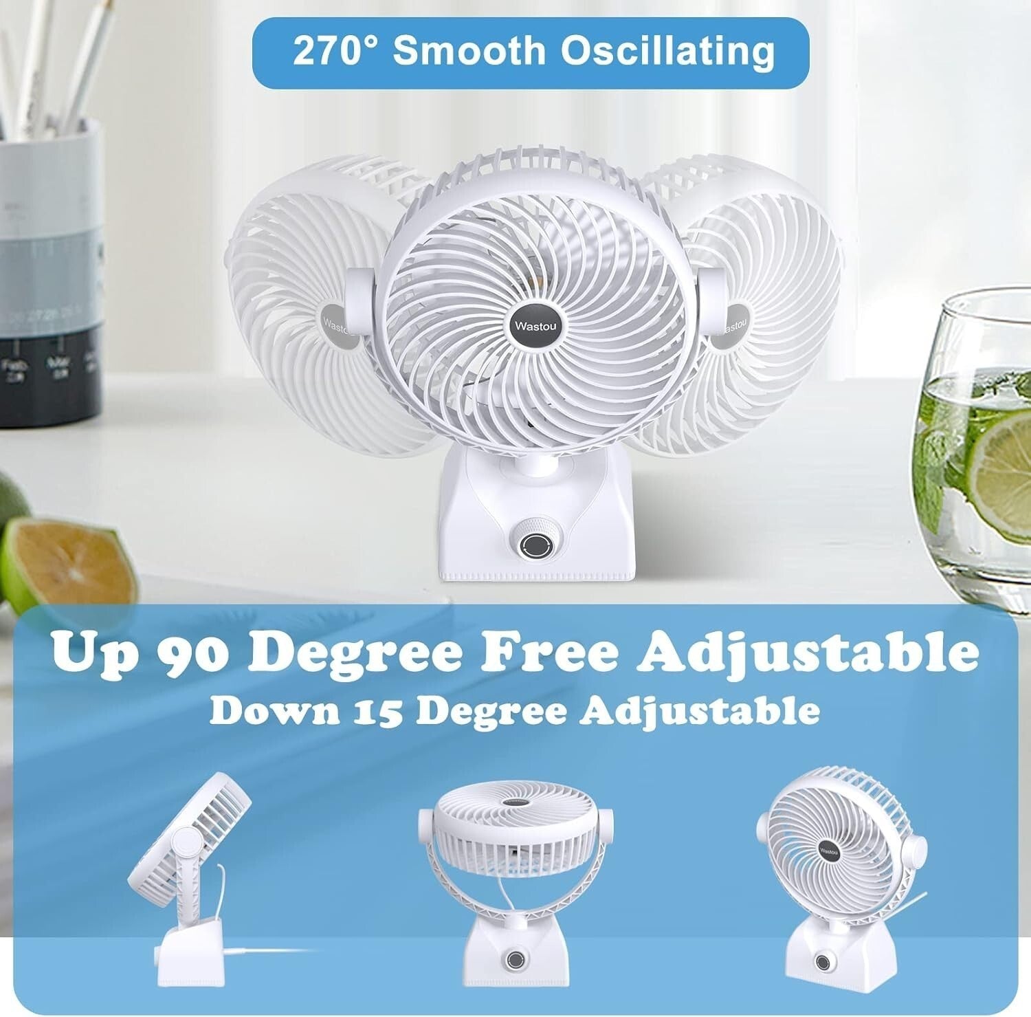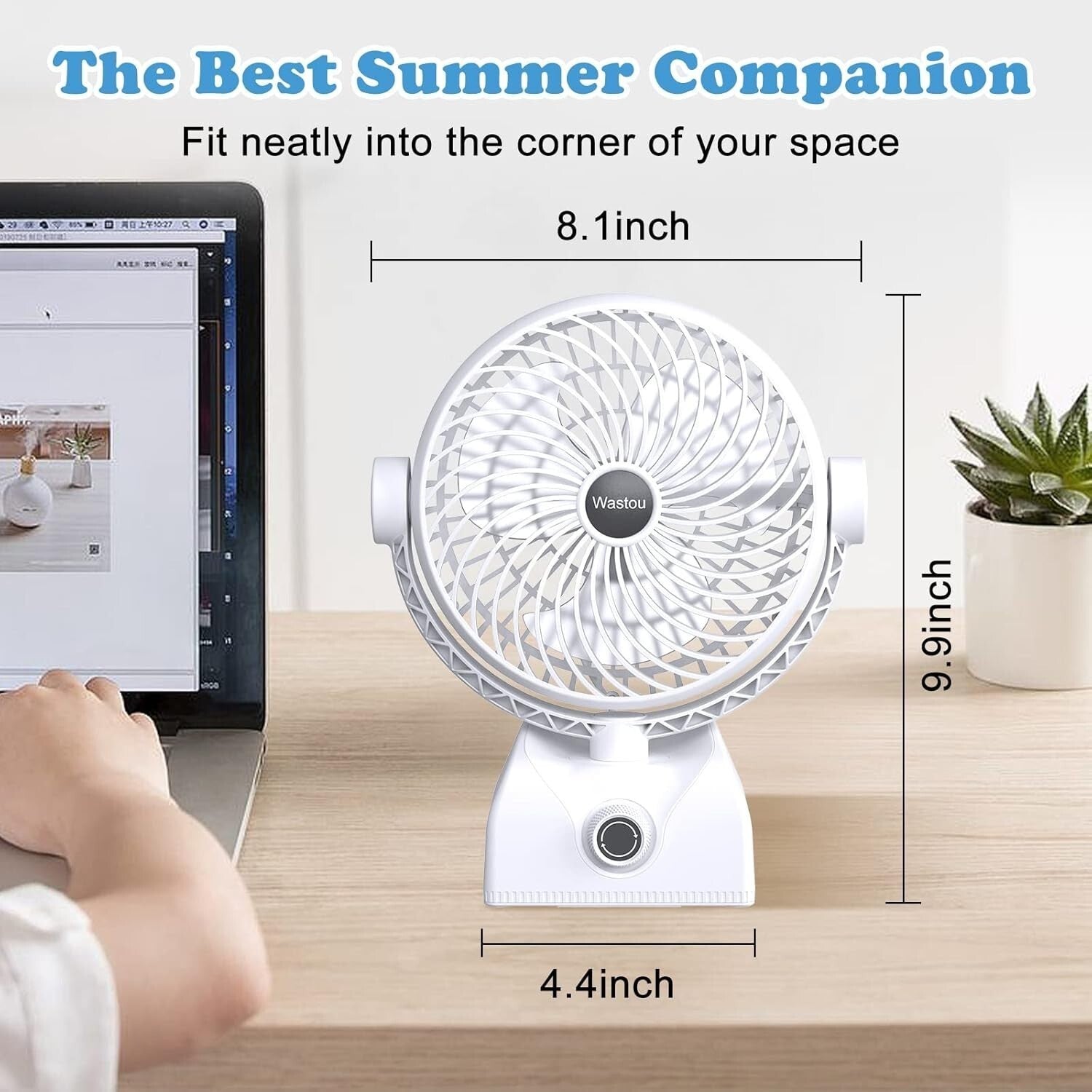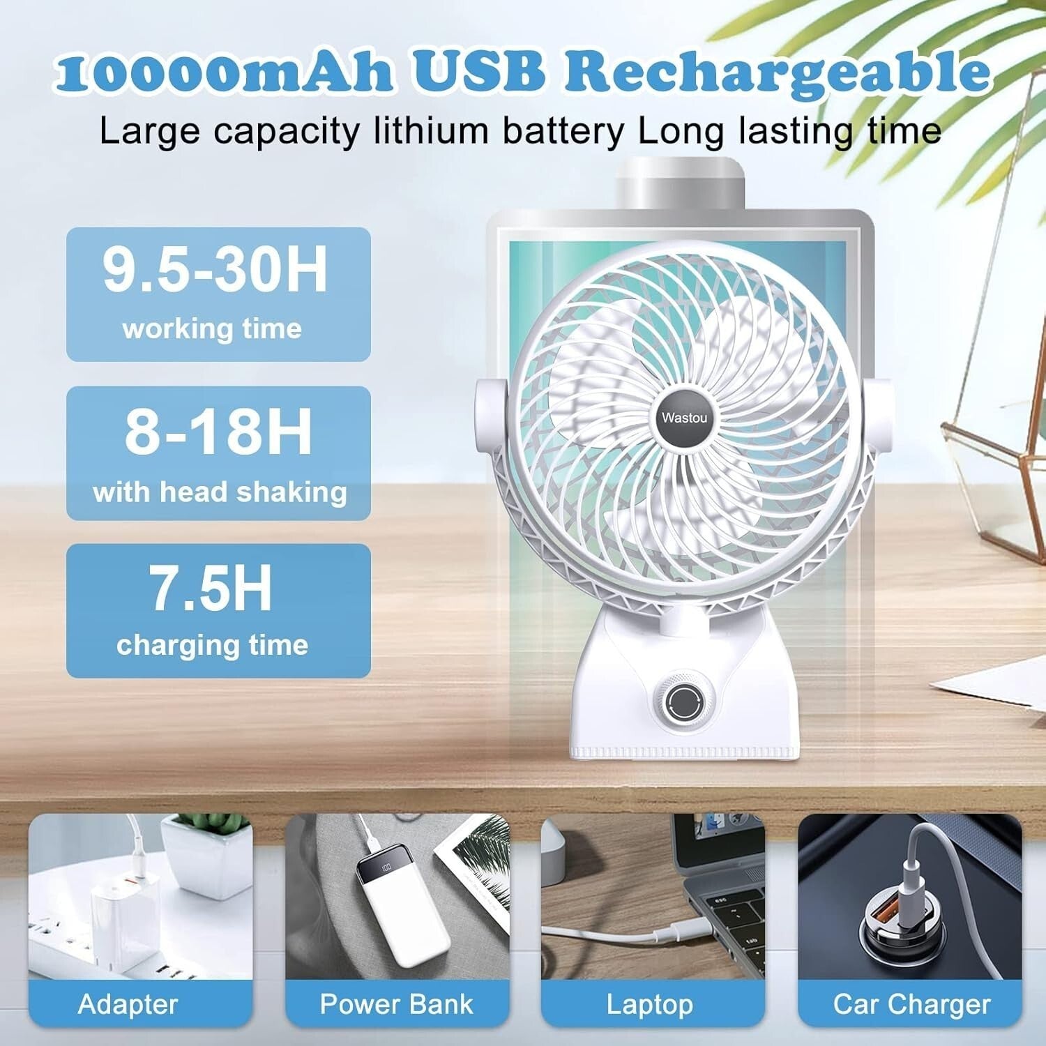 Wastou Ventilatore da Tavolo, Ventilatore da Scrivania Ricaricabile tramite USB, Ventilatore a Torre Portatile con Batteria da 10000mAh, Velocità Regolabile, Testa Girevole per Casa e Ufficio
