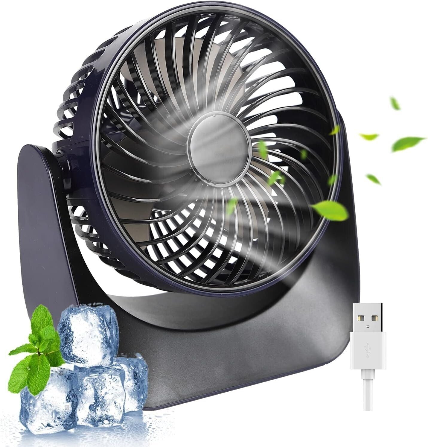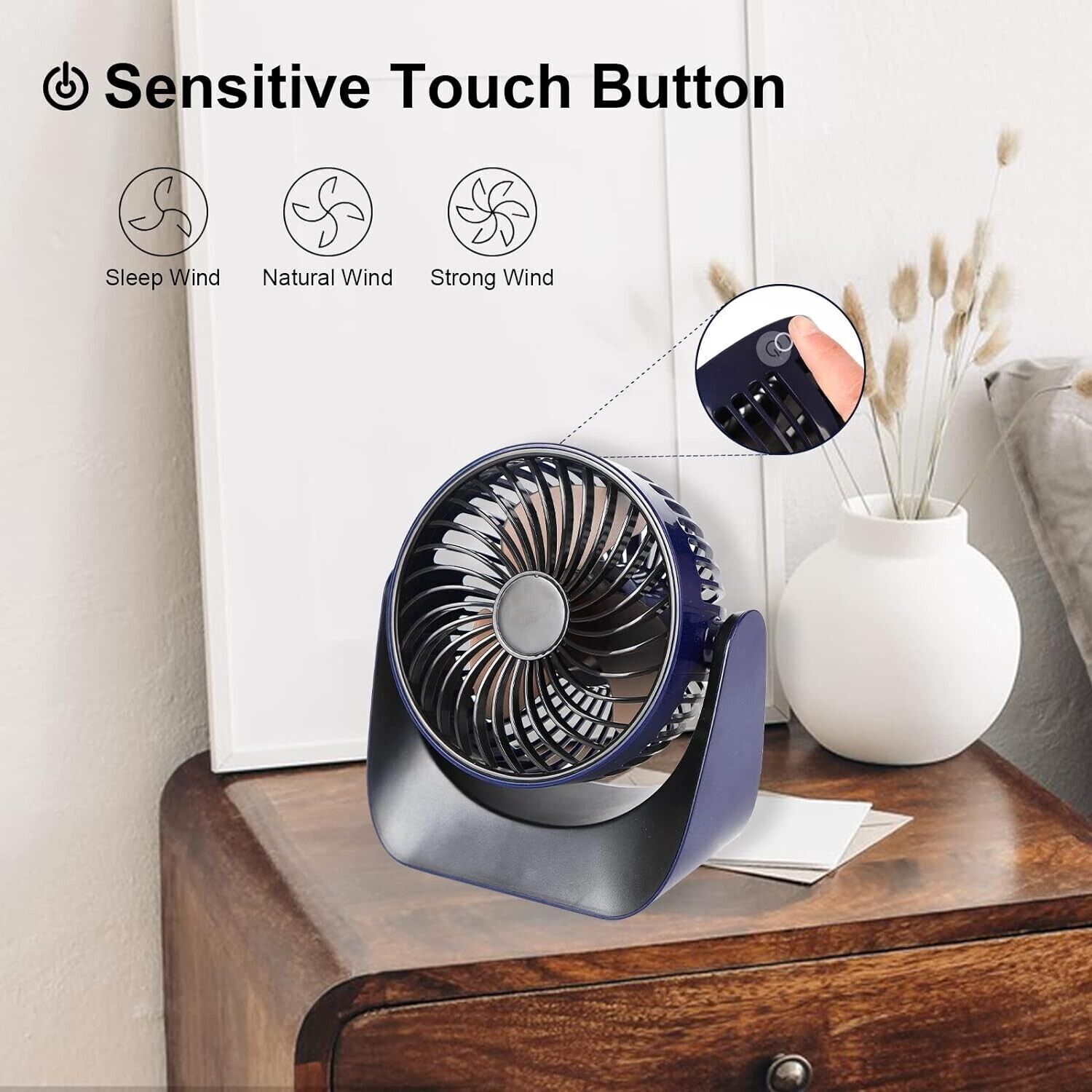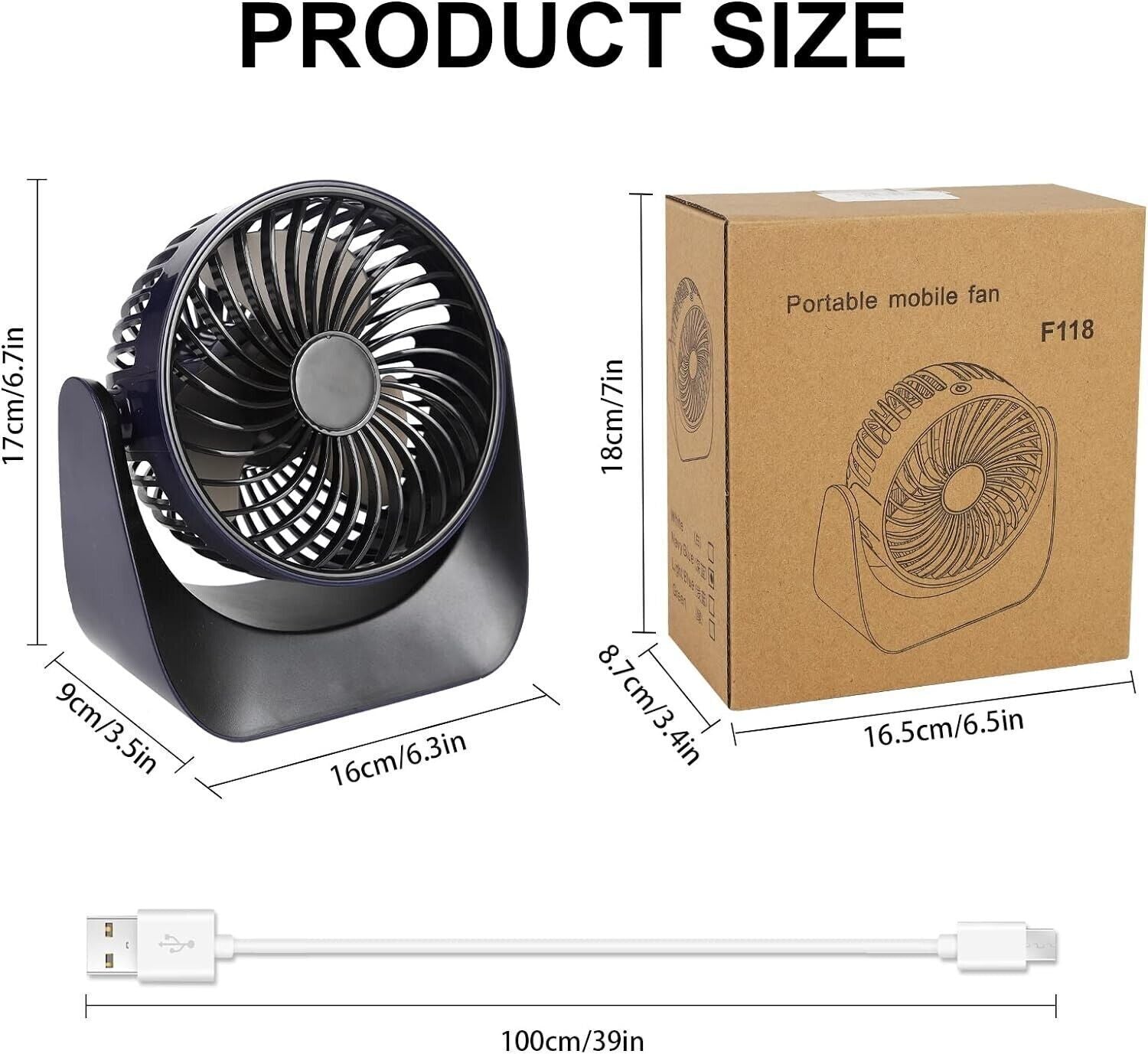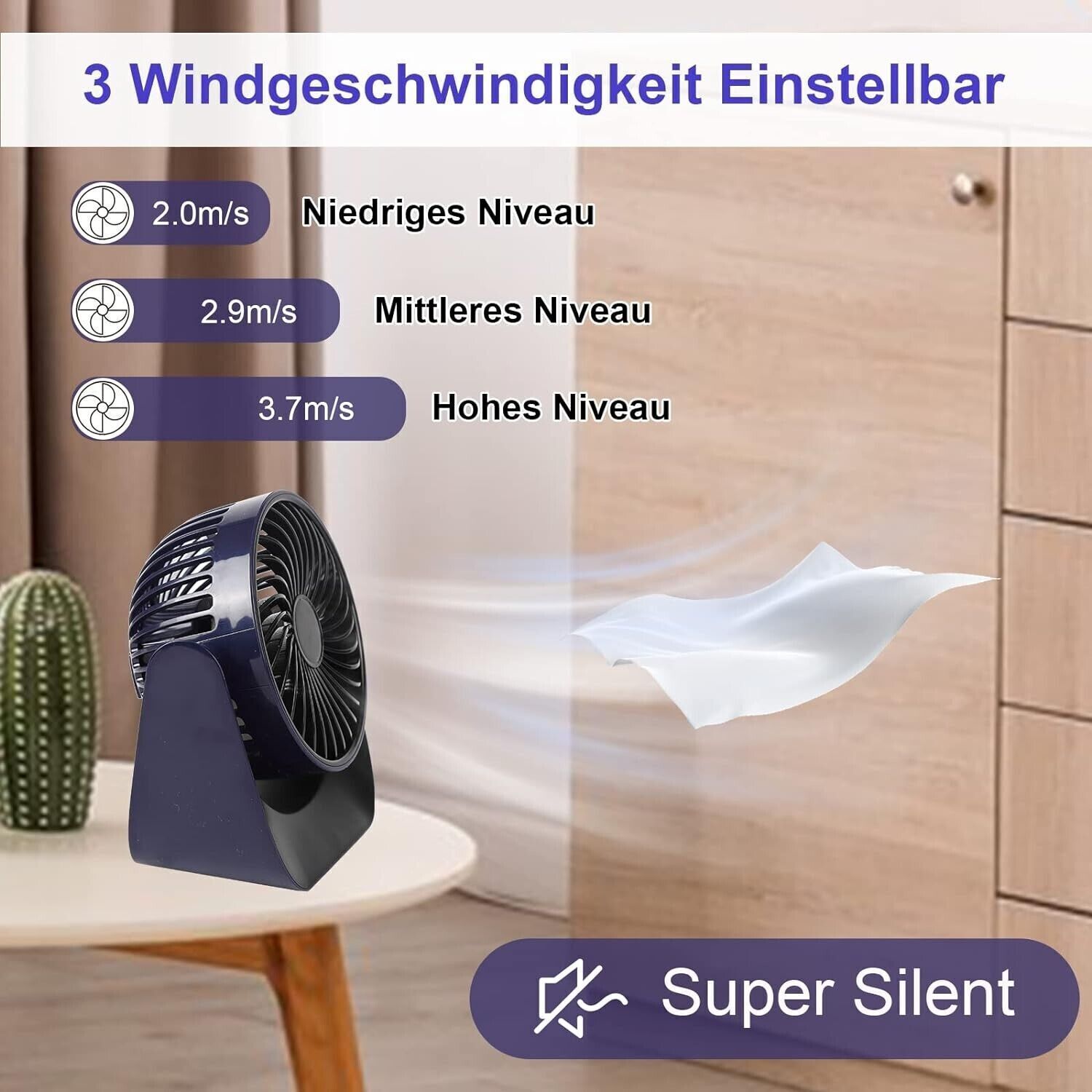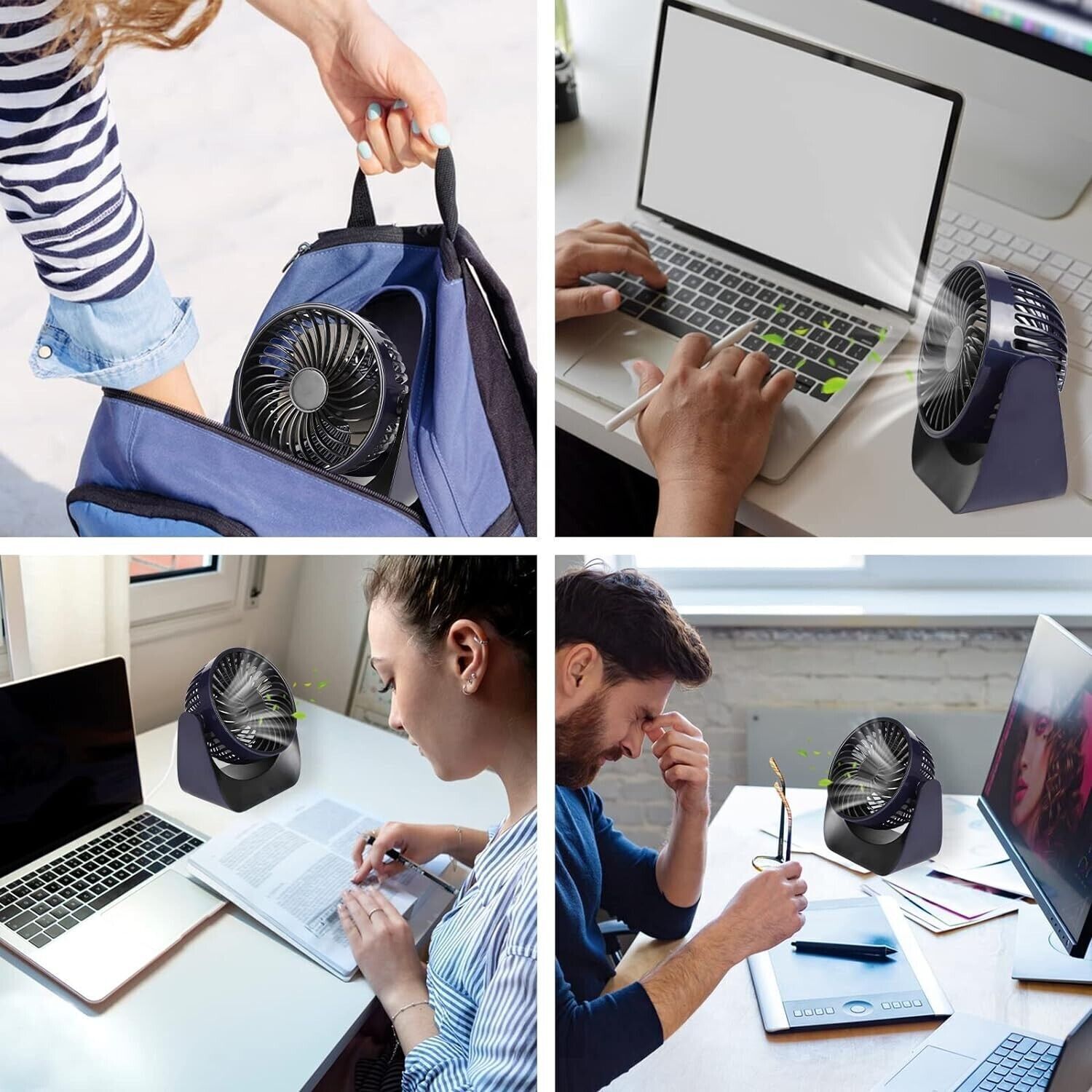 Ventilatore da tavolo USB con vento forte regolabile a 3 velocità e testa ruotabile a 360°, silenzioso e potente con ventola di raffreddamento