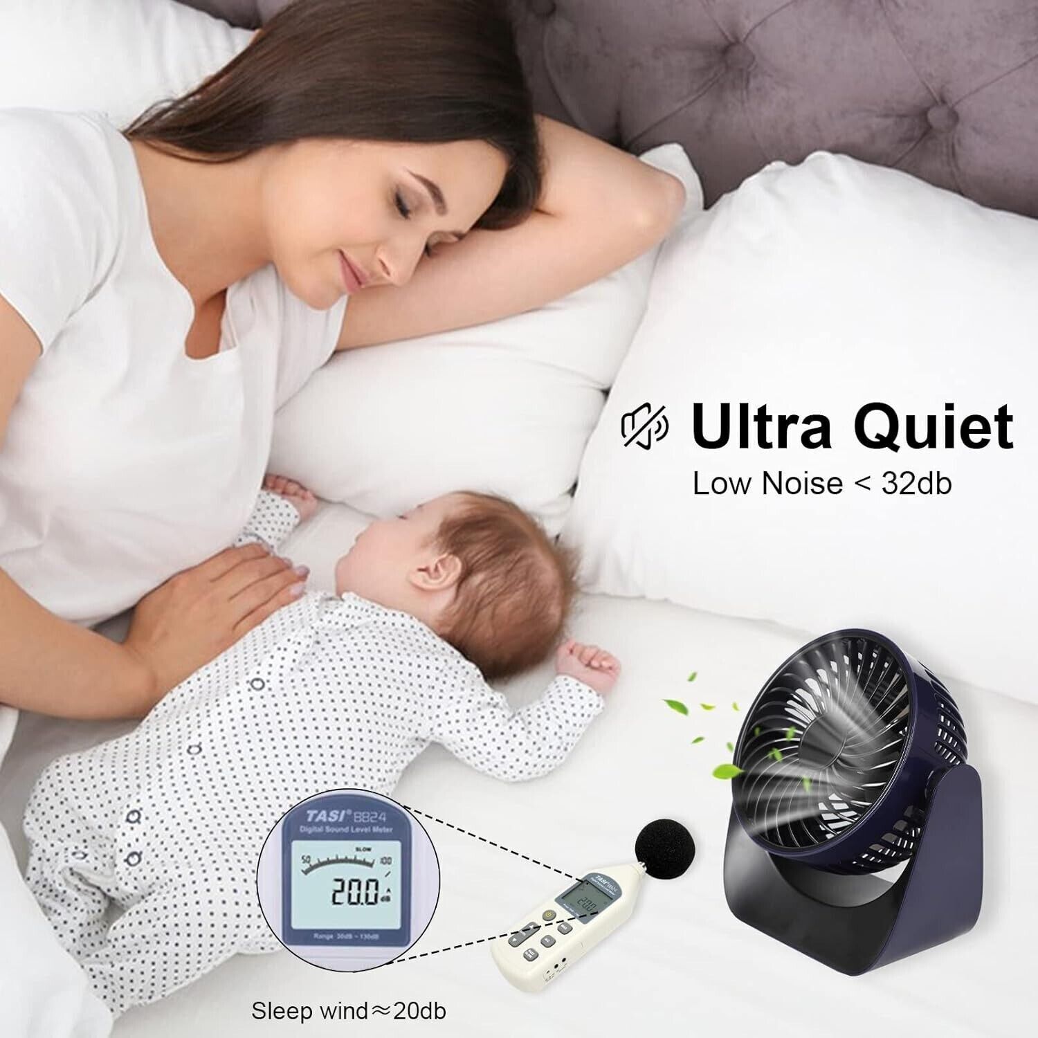 Funzionamento silenzioso: questa ventola ha una struttura silenziosa che fornisce un flusso d'aria elevato mantenendo il rumore al minimo. Questo ventilatore silenzioso funziona in modo molto silenzioso e non disturberà il tuo riposo o il tuo lavoro. Questo mini ventilatore è perfetto per l'uso quando studi, leggi, lavori, dormi, fai yoga e altro ancora.