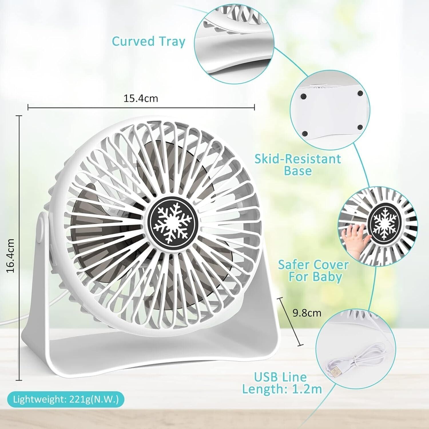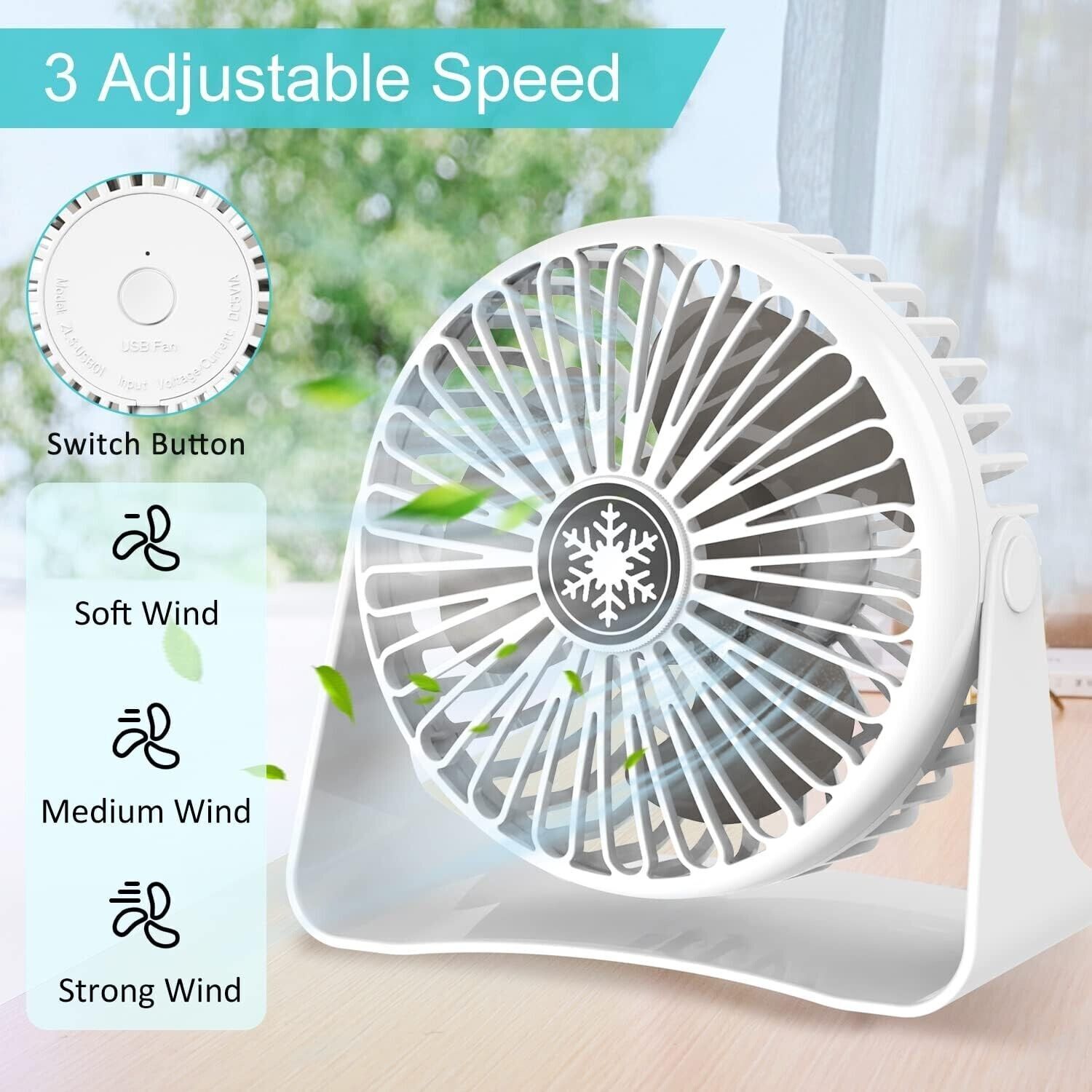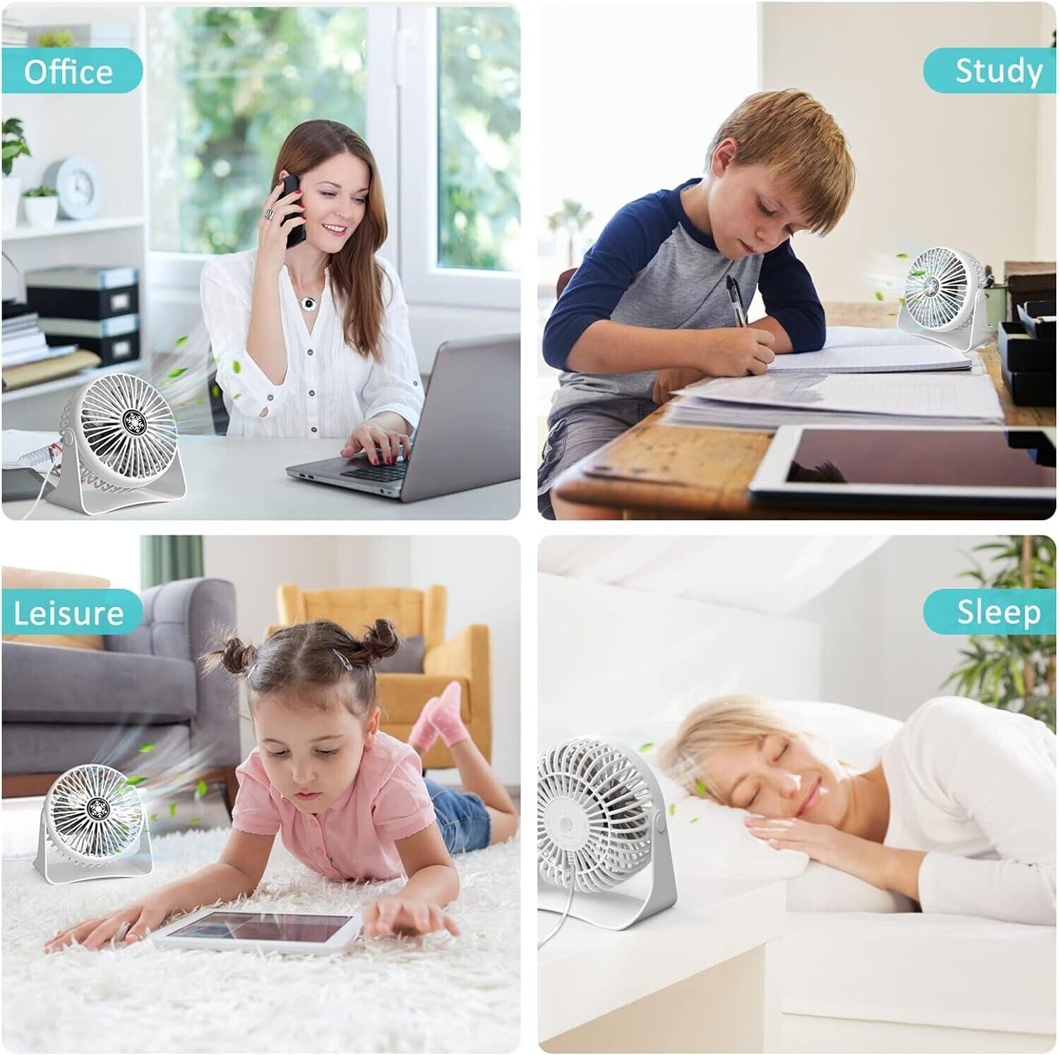 Ventilatore USB, Mini USB Ventilatore Silenzioso, Regolabile 3 Velocità Ventilatore da Tavolo con Copriventola Rimovibile, Rotazione 360°, Mini Fan Scrivania Ventola per Casa, Ufficio, Scrivanie