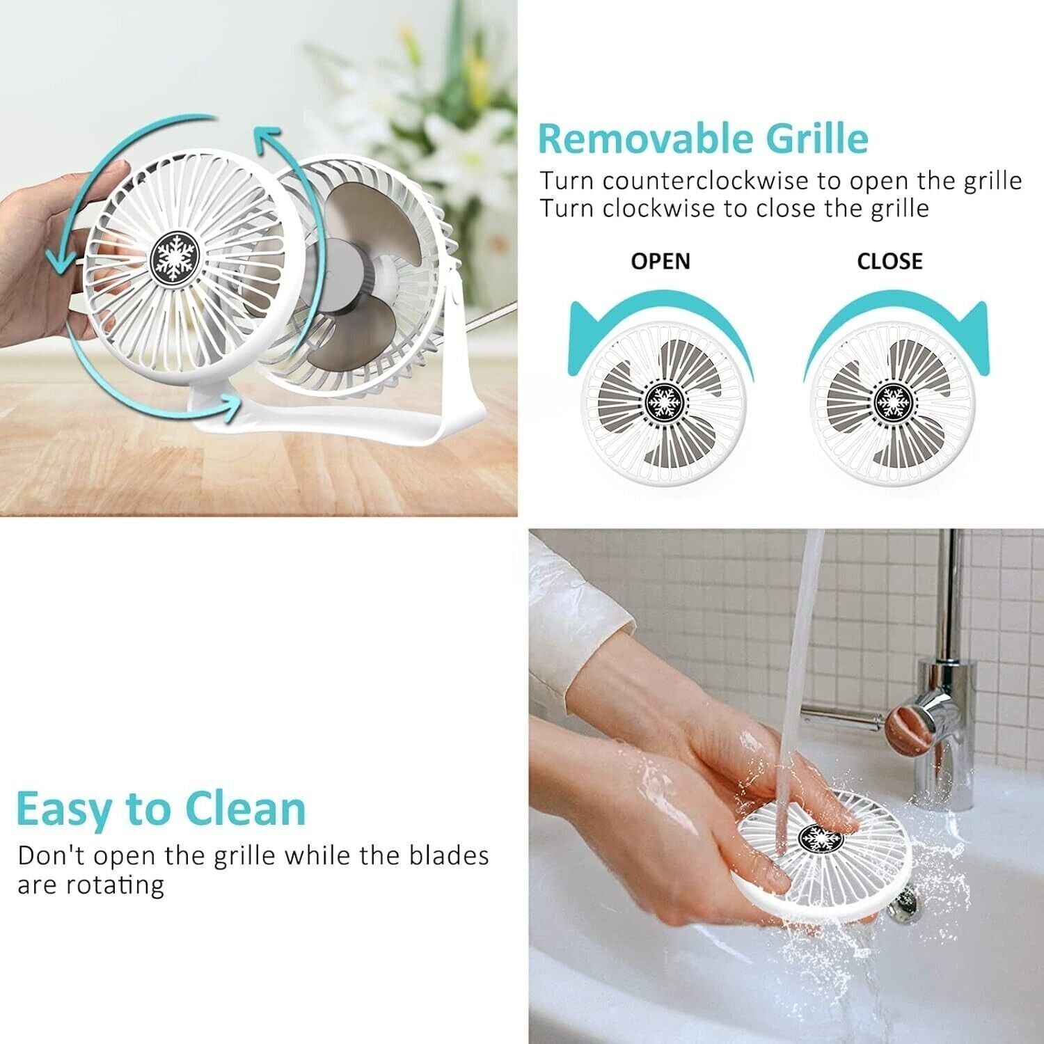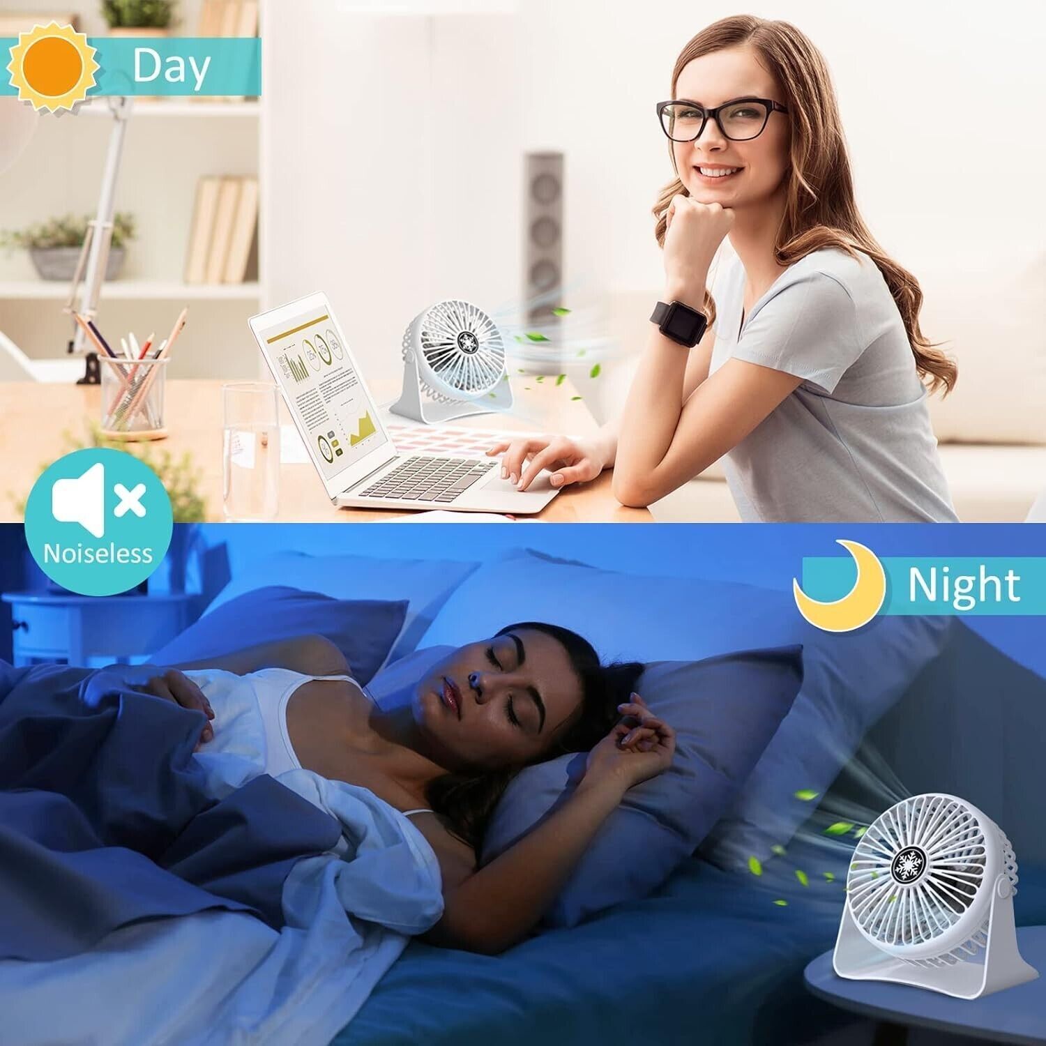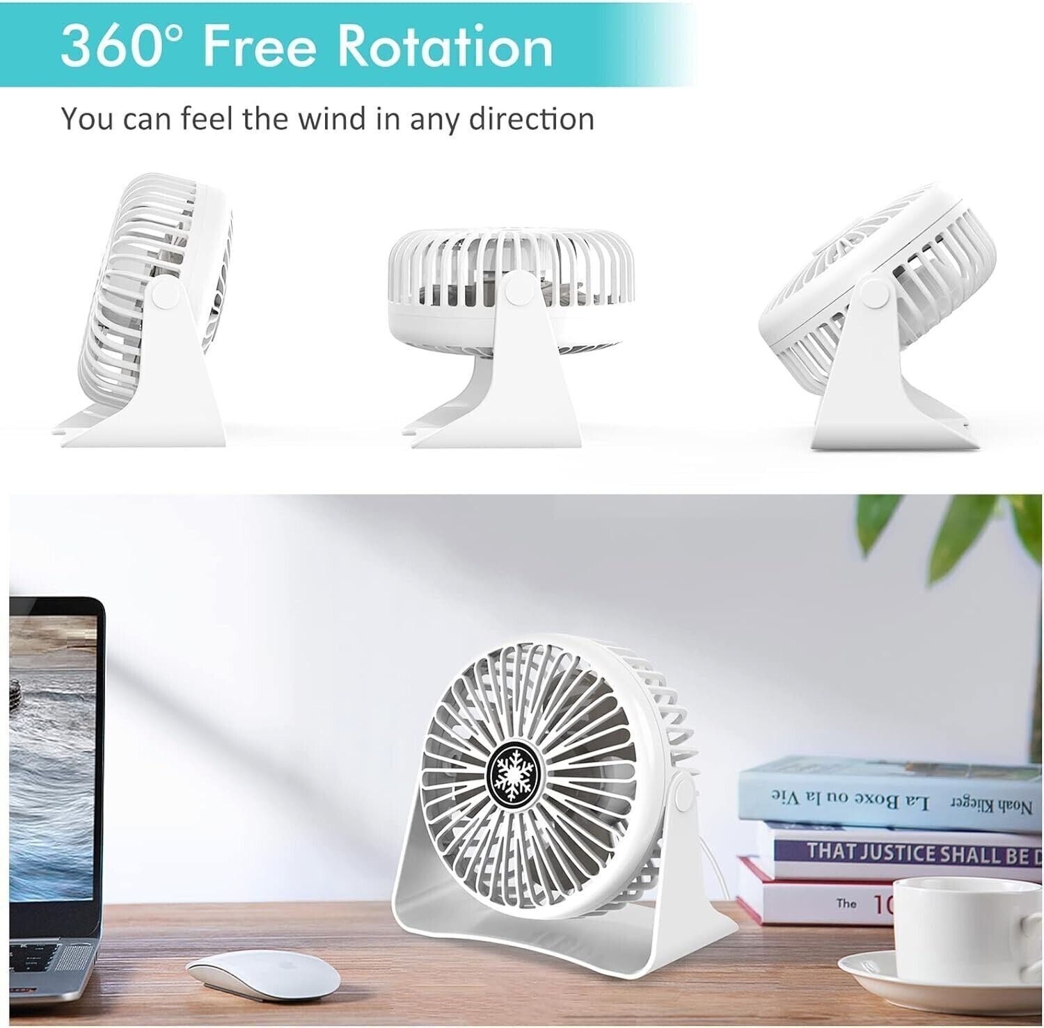 Ventilatore USB, Mini USB Ventilatore Silenzioso, Regolabile 3 Velocità Ventilatore da Tavolo con Copriventola Rimovibile, Rotazione 360°, Mini Fan Scrivania Ventola per Casa, Ufficio, Scrivanie