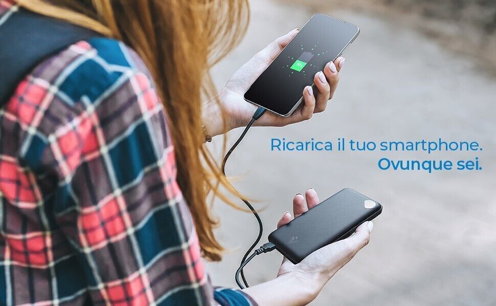 Facile da utilizzare: Basta collegarlo a un dispositivo tramite il cavo incluso nella confezione. La sua batteria da 10000mAh è sufficiente per garantire una ricarica d'emergenza ovunque ci si trovi.