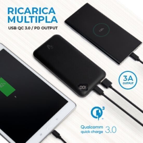 Batteria a polimeri di litio (Li-po): Grazie ad essa, il power bank diventa ultra-slim e vanta dimensioni compatte. Inoltre, a differenza delle tradizionali batterie a ioni di litio, questa garantisce un numero maggiore di cicli di ricarica prima di perdere di efficacia.
