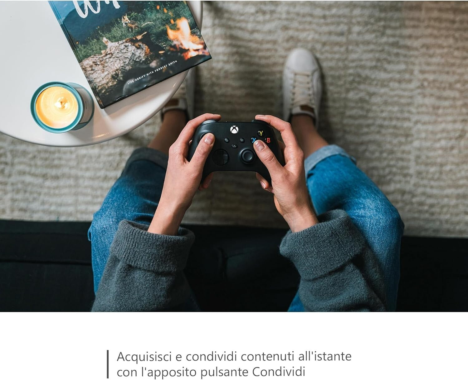 Scopri il design aggiornato del Controller Wireless per Xbox - Carbon Black, con superfici sagomate e proporzioni raffinate per garantire maggiore comfort durante il gioco. Concentrati sull'obiettivo con una croce direzionale ibrida e l'impugnatura antiscivolo su grilletti, pulsanti dorsali e parte posteriore.