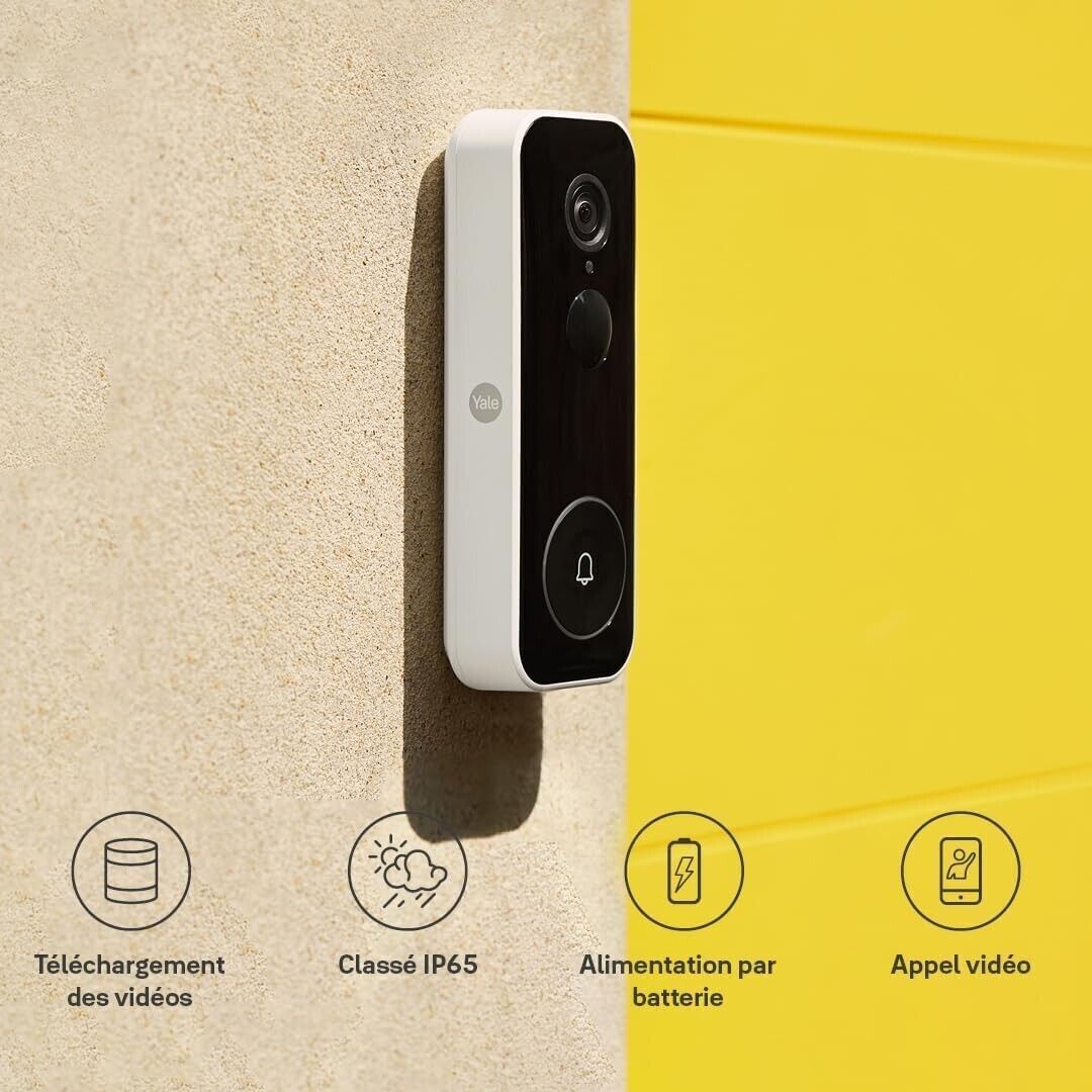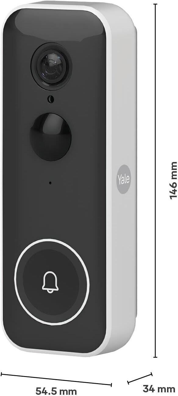 Yale Campanello Smart SV-VDB-1A-W Bianco, Visualizzazione Live Full HD, Audio bidirezionale, Registrazioni di Movimento, Visione Notturna, Chiamata in Tempo Reale, Gestione Tramite l'app Yale Home -