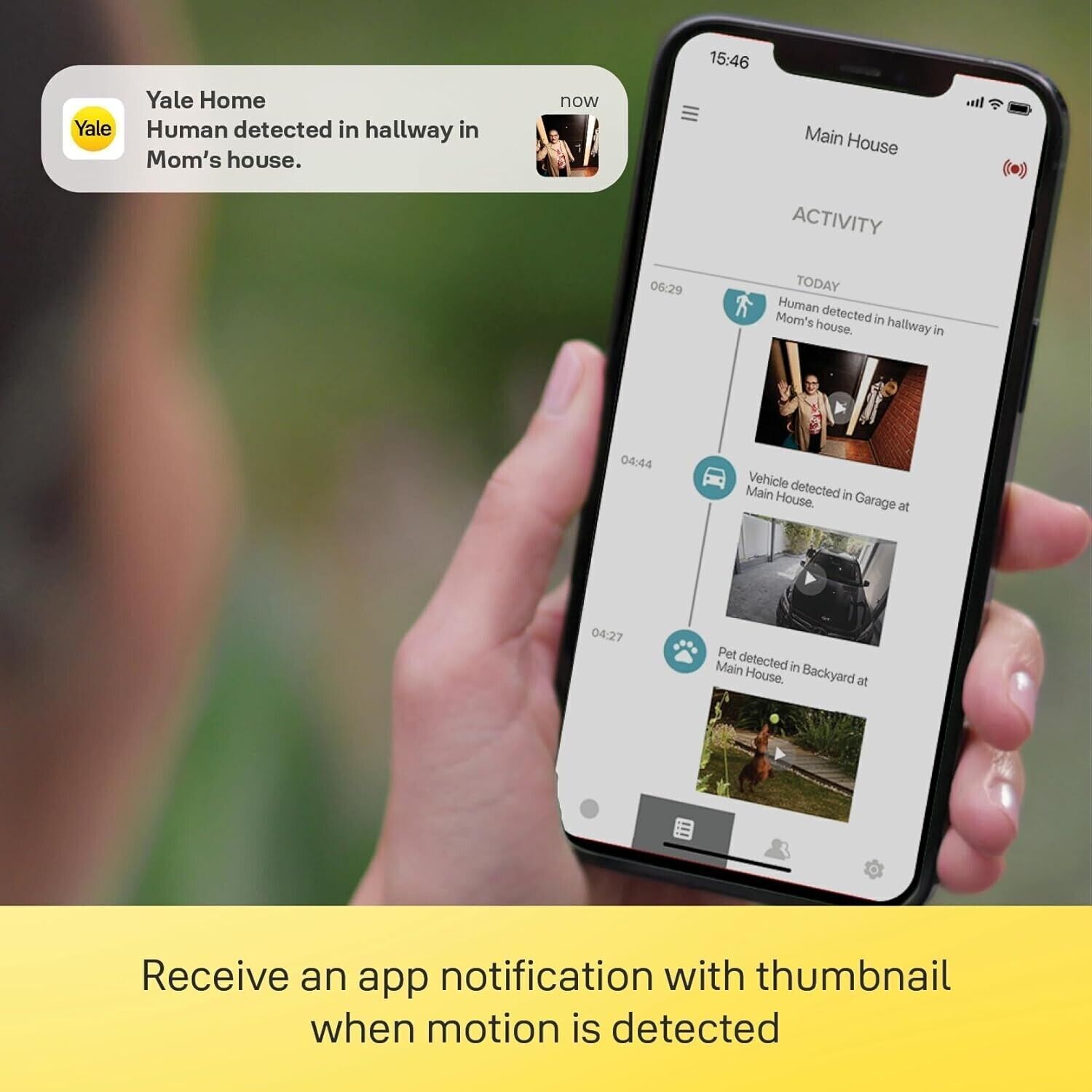 VISUALIZZAZIONE DAL VIVO E AUDIO BIDIREZIONALE: con l'app Yale Home, puoi accedere al feed video in diretta dalla tua telecamera di sicurezza domestica in qualsiasi momento e comunicare con i tuoi cari in tempo reale grazie all'audio bidirezionale