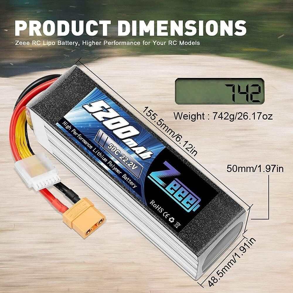 Zeee 6S lipo 22,2V 5200mAh 50C litio Batteria RC batteria, con connectore XT90